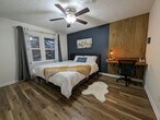 Feel at home in this modern and sleek main-level apartment. This 2-bedroom apartment features an abundance of natural light streaming through ample windows and a private balcony overlooking a verdant oasis. The apartment features a fully equipped kitchen with top-of-the-line appliances, including a stove, oven, dishwasher, microwave, and a Keurig coffee maker. For your convenience, a laundry suite, spices, and condiments are provided. Relax in the comfortable living area or dine al fresco on the private deck. A pack-n-play can be provided for an additional fee of $150, subject to location and availability. Enjoy the peace and quiet of your own secluded haven in this suburban sanctuary. For everyone's safety and security, there are cameras installed in the following outdoor areas: garage, front yard, side yard, deck/patio areas, steps, and back yard. Additionally, there are door and window sensors, as well as motion sensors, inside the property. The terrace level is not included in the booking and may be occupied by other guests. Inside the unit, there is a staircase connecting the two levels, secured with a deadbolt lock to ensure privacy. Before your booking begins, you will need to complete an independent verification to complete your booking. Includes dedicated workspaces and a communal area, ideal for remote workers or students. Registration Number: STR000094 [SI]