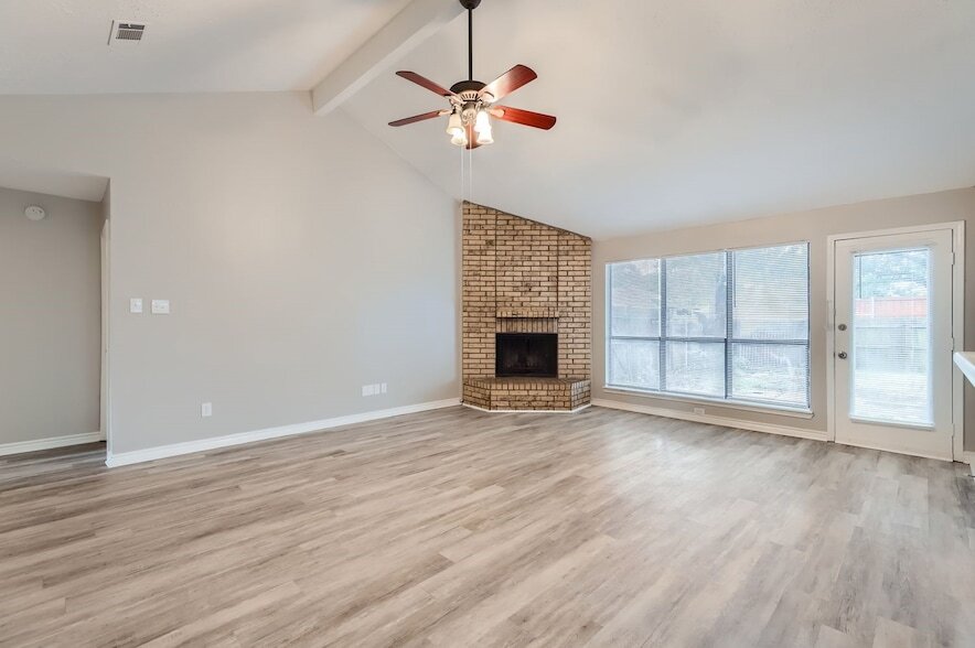 Welcome to 1304 Seabrook Drive, a well-maintained single-story residence in the desirable Imperial Park #2 neighborhood of Plano. Upon entry, you re greeted by vaulted ceilings (vaulted bean ceiling ) and a wall of windows that bathe the living room in natural light and frame views to the backyard. The open flow from the living area into the dining zone and kitchen enhances the sense of space. The kitchen features a breakfast bar, functional layout, and modern appliances (electric range, disposal) ready for daily use. The primary suite is generously proportioned and includes easy access to one of the two full bathrooms. The additional two bedrooms share the second full bath, forming a thoughtful split-plan layout that balances privacy and convenience.Come experience a new way to lease!
