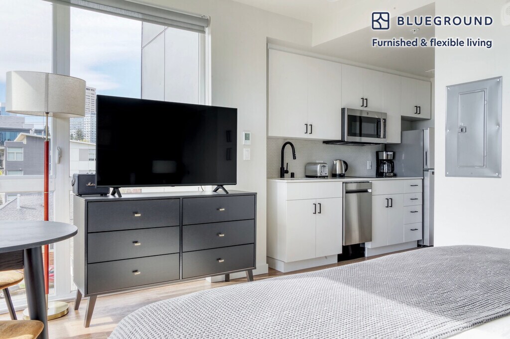 Discover the best of Seattle, with this studio apartment in Central District with views over the city. It’ll be easy to simply show up and start living in this furnished apartment with its fully equipped kitchen, living room, and our dedicated, on-the-ground support. (ID #SEA728) The advertised rate of $1,360/month is the lowest available price, based on a 1 month(s) and 29 day(s) stay with a move-in date of December 21, 2025. If you’re looking for a 1-year stay, the rate is $1,630/month. Rates vary depending on the duration of stay, season, and other parameters. For exact pricing and additional pricing components, please visit our website and enter your desired move-in and move-out dates. The rate is applicable when billed upfront; it can be higher if billed in multiple payments. Brokers are welcome to reach out. Were you looking for an unfurnished lease? Try Blueground instead and upgrade from unfurnished to furnished living: - Furnished at rates comparable to unfurnished - No setup or furniture costs - save thousands - Move-in ready - save time, just bring your suitcase Designed with you in mind Gorgeous furniture, fully equipped kitchen, smart TV, and a premium wireless speaker are just a few of the amenities you’ll find inside this studio apartment. Ideally located in Seattle, you’ll find a lot to love outside as well. When you’re ready to relax, you’ll be happy to discover every Blueground bedroom comes with superior quality mattresses, luxury linens, and cozy towels. We handle everything so you can simply show up and start living. This apartment also offers in-apartment laundry. Sleeping arrangements King Bed, 70.8in/180cm Amenities Building amenities unique to this studio apartment include an on-site: - BBQ Area - Dryer - Washing machine - Pets allowed Arrival and ongoing support The entire apartment is yours to enjoy! Throughout your stay, you’ll have access to our Client Experience team through the Blueground App. You can schedule additional cleanings, submit maintenance requests, and view our neighborhood recommendations with just a few taps. We’ll share all details upon confirmation of your stay. Ideally Located This furnished apartment is located in Central District, a hip residential area with a rich cultural history. The dining scene includes hipster bars and cafes as well as Ethiopian and soul food restaurants. If you prefer to cook, there's also a great selection of grocery stores in the Central District. The neighborhood has a vibrant nightlife scene, with bars and lounges as well as Langston, a converted synagogue that hosts movies and plays. Other Central District highlights include the Northwest African American Museum and the Pratt Fine Arts Center. Other things to note Building amenities may have an extra cost. This Blueground apartment has flexible lease options, allowing you to book it for one month, a year, or more. Pets are welcome, though weight limits and breed restrictions apply and may incur fees. Please keep in mind that this is a walk up building. We take great pride in ensuring every photo displayed is shot in our own units with our actual furnishings. That said, we regularly refresh our decor and furniture arrangement, which may differ from what’s pictured. [SI]
