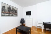 Located in the vibrant Upper East Side on 94th Street between 1st and 2nd Avenue, this charming walk-up apartment is just steps away from the Q line subway station and the M79 cross-town bus. Enjoy easy access to Central Park, the Metropolitan Museum, and a variety of other attractions, making it an ideal spot for healthcare employees and anyone looking to feel at home in the city. This fully furnished apartment features a queen-size bed, a sofa bed, a TV, and a dining table with chairs. The fully equipped kitchen has everything you need to prepare your meals, ensuring a comfortable and convenient stay. Utilities such as electricity, gas, Wi-Fi, and streaming Roku TV are not included in the monthly rent and will cost $330 per month, with a rate of $350 per month between June 1st and October 1st. A pet fee ranging from $200 to $300 applies for approved pets. Additional cleaning services can be arranged for an extra fee. Nestled in the Upper East Side of Manhattan, this apartment is perfectly positioned on 94th Street between 1st and 2nd Avenue. With the new subway line on 2nd Avenue just steps away, and the M79 cross-town bus nearby, getting around is a breeze. Enjoy proximity to Central Park, the Metropolitan Museum, cinemas, coffee shops, and a variety of restaurants and supermarkets. A laundry store and grocery store/deli are conveniently located next to the building. A minimum stay of 30 days is required, with some cases between June 1st and September 1st requiring a minimum stay of 90 days. To ensure a smooth check-in process, coordinate your arrival time at least 72 hours in advance. A late check-in fee of $50 applies for arrivals after 10 PM, and $100 for arrivals after midnight. Check-out time is by 11 AM, and guests are asked to empty the refrigerator and dispose of all trash before leaving. Furniture and decor may vary from online photos as they are periodically updated. A valid government-issued photo ID is required at check-in for all guests, and for long-term leases over 6 months, a VOE letter and a copy of the current paycheck are required. When pets stay, guests are responsible for replenishing all beddings with new ones. If you require early check-in, late check-out, or have any special requests (e.g. additional guests, luggage storage), please submit them in writing in advance. All requests are subject to availability and may incur an additional fee if approved. As part of our standard guest verification process, the partner will request that you complete a short application and authorize a background check a few weeks prior to arrival. Instructions will be provided closer to your check-in date. Please note: A $75 application fee may apply. [SI]
