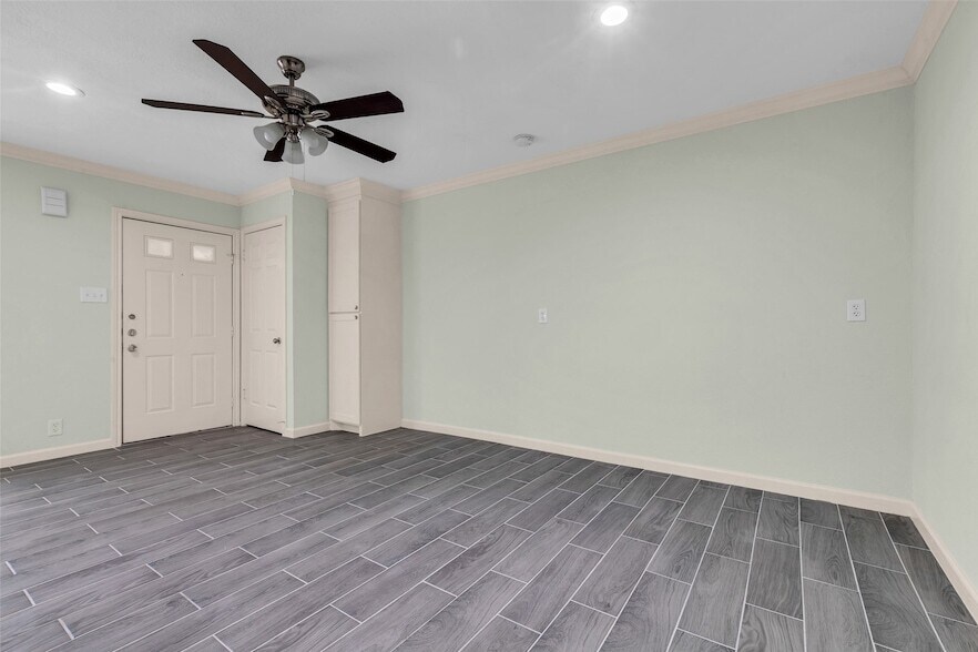 Welcome to Woodvine Park Condominiums, ideally situated near I-10 and Westview, surrounded by vibrant and rapidly growing neighborhoods. Enjoy convenient access to Memorial City Mall, fine dining, and local businesses. This fully updated efficiency unit is move-in ready with low HOA fees. The open layout features tile flooring throughout no carpet and a thoughtfully remodeled design that maximizes comfort and functionality. The kitchen is highlighted by granite countertops, shaker cabinets, a full tile backsplash, and stainless steel appliances. The HVAC system was replaced within the last 2 3 years, and a stackable washer and dryer are included. The upgraded bathroom offers matching granite and cabinetry, while the spacious walk-in closet provides ample storage. Don t miss the opportunity to own this turnkey unit schedule your showing today!