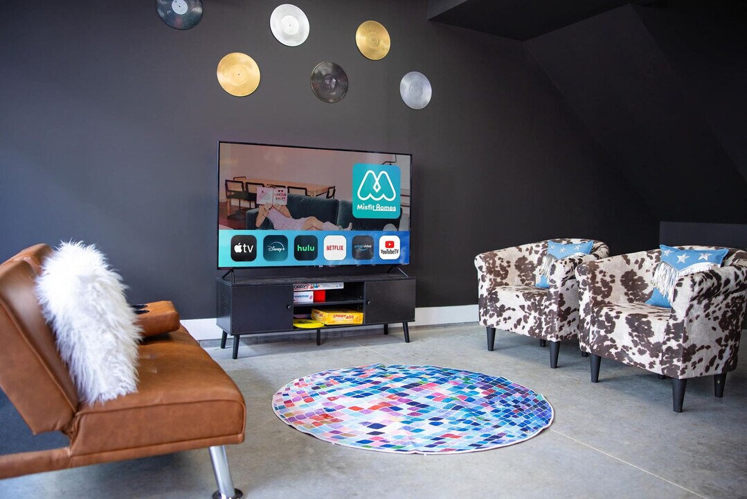 Feel at home in this brand new, spacious, luxury 4-bedroom Music City retreat, perfect for epic group getaways. This home exudes energy and features a fully equipped kitchen, plush bedding, Smart TVs, fast Wi-Fi, premium linens, a washer/dryer, and a complimentary coffee set-up. Enjoy the rooftop deck with a hot tub, city views, and beer pong. The game room features karaoke, ping pong, a mural wall, and a photo backdrop. There is also a BBQ grill and cornhole in the outdoor lounge area. Private parallel parking is available for one car. Ample free street parking and community overflow are available on a first-come, first-served basis. Located just minutes from downtown in the Baptist World Center neighborhood, you’ll have quick access to Nashville’s finest dining, music, and nightlife. Enjoy brunch spots, Southern cuisine, cocktail bars, and boutique shops just minutes away. With easy access to major roads and public transit, exploring Music City is a breeze. Broadway and Germantown are a short drive away. Smoking is not allowed inside the property or near open doors or windows, and a minimum $500 fine applies for violations. Quiet hours are from 10 pm–8 am on weekdays and 12 am–8 am on weekends. Registration Number: [SI]