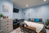 Property Id: 2205253 Relax in this spacious ground-floor King bedroom with desk and Roku TV and your own dedicated private bathroom that is a few paces outside the room. We are an Airbnb and there are a few other rooms in the home that may host guests or be rented out. We don't have many guest/bookings and we prefer peace and quiet. The home is cleaned on a daily basis and professionally deep-cleaned regularly. The host and a shy resident cat reside in the home in their own private suite. The cat does not roam around the home. The house is in a quiet neighborhood on a cul de sac. Our next door neighbor has large dogs that bark if you're in the backyard. The living room has a large sectional couch in front of a TV & electric fireplace. The front of the home is a large game room. The backyard has outdoor furniture & the "high desert" air - pure of pollutions and toxins. You also have access to the home's open kitchen and dining area and upstairs laundry facilities. See on Airbnb: