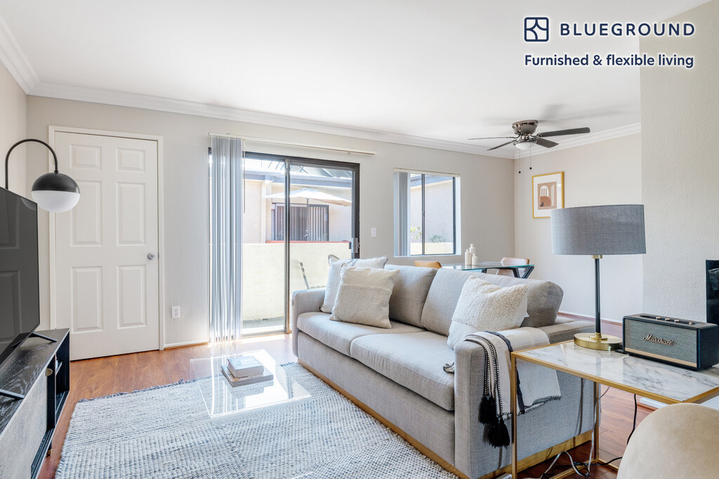Discover the best of Los Angeles, with this two bedroom apartment in Sherman Oaks. It’ll be easy to simply show up and start living in this elegantly furnished apartment with its fully equipped kitchen, pretty living room, and our dedicated, on-the-ground support. (ID #LAX463) The advertised rate of $2,930/month is the lowest available price, based on a 12 month(s) stay with a move-in date of May 2, 2026. Rates vary depending on the duration of stay, season, and other parameters. For exact pricing and additional pricing components, please visit our website and enter your desired move-in and move-out dates. The rate is applicable when billed upfront; it can be higher if billed in multiple payments. Brokers are welcome to reach out. Were you looking for an unfurnished lease? Try Blueground instead and upgrade from unfurnished to furnished living: - Furnished at rates comparable to unfurnished - No setup or furniture costs - save thousands - Move-in ready - save time, just bring your suitcase Designed with you in mind Thoughtfully designed with bespoke finishes, modern furnishings, and a fully equipped kitchen, you’ll enjoy that “I’m home” feeling with this Blueground apartment. Whether you’re lounging in your cozy living room streaming the latest and greatest entertainment on the smart TV or premium wireless speaker, or getting some well-earned rest on the superior quality mattress with luxury linens, you’ll fall in love with everything this Sherman Oaks apartment has to offer. This apartment also offers in-apartment laundry. Sleeping arrangements King Bed, 70.8in/180cm Queen Bed, 63in/160cm Amenities Building amenities unique to this two bedroom apartment include an on-site: - Dryer - Washing machine - Parking - Pets allowed Arrival and ongoing support The entire apartment is yours to enjoy! Throughout your stay, you’ll have access to our Client Experience team through the Blueground App. You can schedule additional cleanings, submit maintenance requests, and view our neighborhood recommendations with just a few taps. We’ll share all details upon confirmation of your stay. Ideally Located This furnished apartment is located in Sherman Oaks in the San Fernando Valley section of Los Angeles. With the Santa Monica Mountains as a backdrop, residents of this affluent area enjoy beautiful natural landscapes. Locals can enjoy lovely green spaces like Coldwater Canyon Park, which sits at the top of the Santa Monica Mountains, and Van Nuys Sherman Oaks Park, with indoor-outdoor sports facilities for the whole family. Sherman Oaks has a thriving restaurant scene and plenty of nightlife. There’s also a farmer’s market held each Tuesday. Most residents of Sherman Oaks rely on cars to get around, with top-tier attractions like the Santa Monica Pier, the Los Angeles Zoo, and Universal Studios Hollywood just a short drive away. Other things to note Building amenities may have an extra cost. This Blueground apartment has flexible lease options, allowing you to book it for one month, a year, or more. Pets are welcome, though weight limits and breed restrictions apply and may incur fees. Parking is offered based on availability and is subject to a fee. Please keep in mind that this is a walk up building. We take great pride in ensuring every photo displayed is shot in our own units with our actual furnishings. That said, we regularly refresh our decor and furniture arrangement, which may differ from what’s pictured.