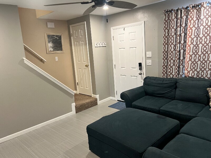 Property Id: 1771372 Quiet neighborhood All pictures taken September 2025. Move in ready today. This is an extremely well taken care of town home in a very quiet neighborhood. Complex is surrounded by single family homes and the grounds are professionally groomed with cameras for security. There is pool that is professional cleaned and maintained by an HOA. Those with access is limited (fob key access). Upstairs has 2 bedrooms carpeted. Master Bedroom (14X12) has a very large walk in closet. The bedrooms have a shared full bathroom between them. A king sized bed and wall mounted TV in Master Bedroom. Downstairs (all newly renovated): Connected Kitchen, Dining area, large laundry room/pantry, half bathroom, and living room--all newly tiled and fresh paint. All new lights installed inside and out. Furnished with tv, sectional, kitchen table, and tv console. Balcony & screened patio: New lights installed and patio is newly tiled. Parking: two reserved/assigned parking spots outside front door.
