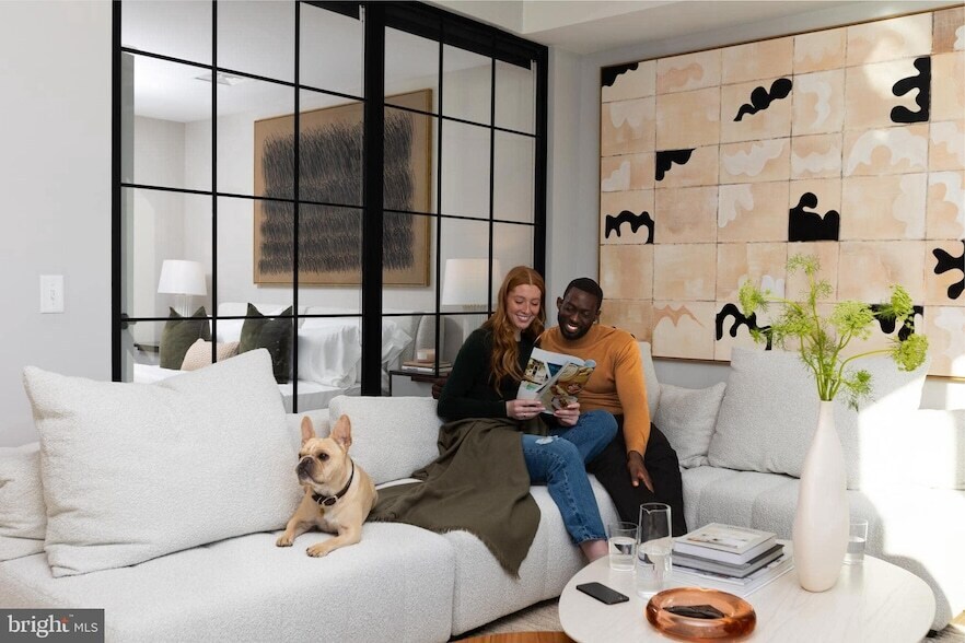 CURRENTLY OFFERING 2 months FREE on a 14-month lease. Unmatched Urban Luxury with Iconic Views & Industrial Elegance- Welcome to an unparalleled living experience in this spectacular 2-bedroom, 2-bath luxury apartment spanning 1,196 square feet of meticulously crafted interiors. Offering panoramic views of the Delaware River, Ben Franklin Bridge, and Center City, this residence harmonizes industrial charm with contemporary opulence, creating a sanctuary of style and sophistication.Bathed in natural light from oversized factory-style windows, the living and dining spaces boast 8 wide plank oak floors, offering a warm yet modern foundation. The chef-inspired kitchen is a masterpiece of design, featuring quartz countertops with a seamless full-height backsplash, custom two-toned oak and soft-close cabinetry with integrated pulls, and top-of-the-line stainless steel appliances. Every detail speaks to refined craftsmanship, from the matte black faucet with pull-down sprayer to the modern roller shades that perfectly complement the sleek, industrial aesthetic.Retreat to the spacious bedrooms, designed with both relaxation and function in mind. With generous closet space and an open layout, these rooms offer serene escapes from the city bustle. The primary suite boasts a spa-quality bathroom, complete with a walk-in glass shower, floor-to-ceiling subway tiles, and a custom oak vanity. Herringbone ceramic floors, bespoke mid-century sconces, and Kohler bath fixtures elevate the experience, blending timeless elegance with modern convenience.This residence goes beyond beauty, integrating cutting-edge technology for ultimate convenience. Keyless entry, smart thermostats, and a connected campus with seamless Wi-Fi from the lobby to the rooftop make every aspect of living effortless.Living here means access to a suite of exclusive amenities designed to enhance every aspect of your lifestyle. The rooftop offers four interconnected experiences, allowing you to soak in the vistas of the Delaware River and Philadelphia skyline. Whether you're working out in the state-of-the-art fitness center complete with basketball courts, rock climbing walls, and private studio space or unwinding at Pier 61, a riverside retreat with a concert barge, the possibilities are endless.Explore new culinary skills in the demonstration kitchen, host unforgettable gatherings in the resident bar, or lose yourself in a favorite book at the cozy library. Dedicated workspaces with open desks and plush lounge areas allow for deep focus and productivity without ever leaving home. (Photos are of model unit and may not match this specific unit)