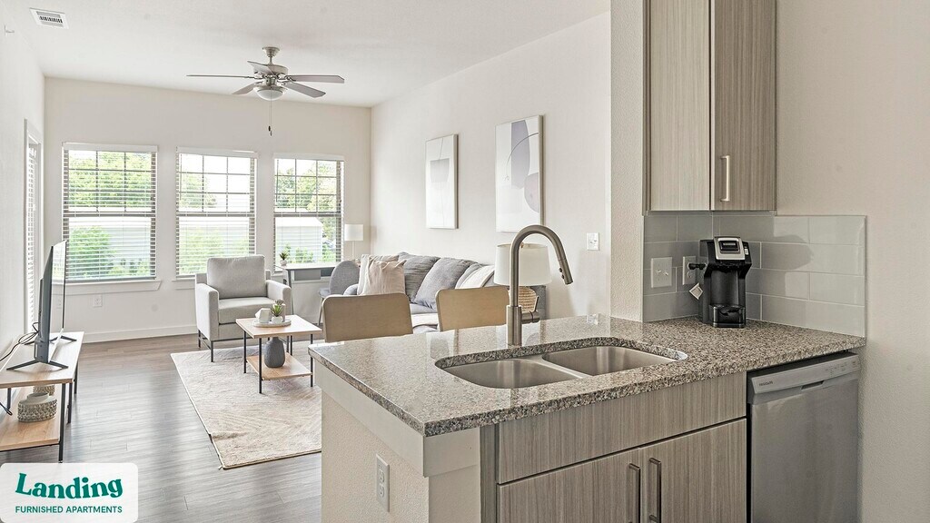 Landing offers flexible lease terms from weeks to months. Please always visit our website or contact us for the latest pricing & availability. Stay longer, save more: 6-Month Minimum base rent: starts at $1779/mo 12-Month Minimum base rent: starts at $1429/mo Landing offers flexible leases across a network of over 35,000 fully-furnished apartments throughout 375+ cities so you can rent on your terms, practically anywhere, and avoid the hassle of paying deposits or application fees. Visit to learn about all the benefits of a Landing membership, see our competitive up-to-date pricing, explore available apartments, take virtual tours, and make reservations online without jumping through traditional rental hoops. Landing's apartments at Bridge at Davenport Place are designed for comfortable, easy living, with the ability to stay as long as you like. Experience living with Landing Every apartment is outfitted with all the modern essentials including: custom-designed furnishings, a fully-equipped kitchen with deluxe stainless steel appliances, a gourmet coffee maker, premium linens, Smart TVs, and incredibly fast, reliable internet for working from home. When you live with Landing, you'll enjoy a hassle-free experience with the added benefit of 24/7 access to our dedicated member experience team. Some of the nitty-gritty: a background check and proof of income are required; we're completely smoke-free; bundled utility packages and pricing vary based on length of stay; pet-friendly options available; listed price reflects a 12-month minimum stay.