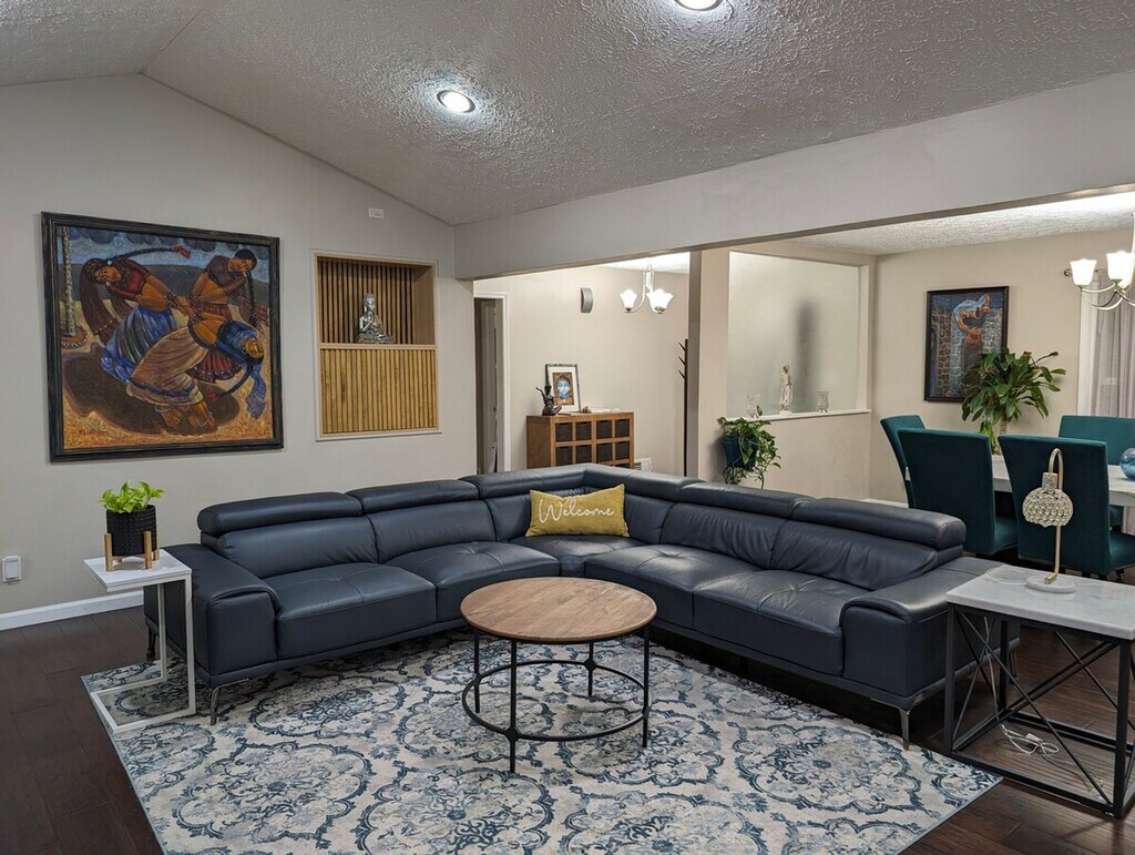 Discover comfort and style in this 3-bedroom, 2.5-bathroom bungalow with a sunroom and common living areas. Unwind in the king-size bedrooms, enjoy the patio with garden views, and catch Falcons' games on large flat-screen TVs. Ideal for work or play, the space offers a fully equipped kitchen, high-speed Wi-Fi, and a deck for sipping Sweet water brews amidst wooded surroundings. Step inside and be greeted by modern, sleek design that exudes sophistication and comfort. An abundance of natural light streams through ample windows and a private balcony overlooking a verdant oasis. The apartment features dedicated workspaces and a communal area, ideal for remote workers or students. Expansive entertainment options include a large screen TV, living room, and dining area. Culinary convenience is ensured with a fully equipped kitchen featuring top-of-the-line appliances, including a stove, oven, dishwasher, microwave, and a Keurig coffee maker. Relax in the comfortable living area, dine al fresco on the private deck, or simply soak in the tranquility of your suburban sanctuary. A laundry suite adds convenience, along with a private entrance and effortless check-in. Early check-in or late check-out may be accommodated upon availability and with prior arrangement for an additional fee, allowing you to maximize your East Cobb experience. You’ll love discovering Atlanta from this Marietta home! Stay close and drive into charming Marietta Square (2 miles, 8 minutes) to check out the Marietta Museum of History, the Gone with the Wind Museum, and dine at an array of restaurants. While you’re at the Square, stop by Kennesaw Mountain National Battlefield Park (6 miles, 12 minutes), the site of an 1864 Civil War battle that is now home to miles of wooded paths. Continue into Kennesaw to visit friends at Kennesaw State University, or watch the Owls play football against other D1 college teams! If you have kids with you or you’re simply a kid at heart, you won’t want to miss out on the water slides at Six Flags Whitewater and the rollercoasters at Six Flags Over Georgia! Another way to cool off from the heat is to shoot the hooch! Rent water tubes or bring your own to tube down the Chattahoochee River with a cold beverage in hand. Sports fans, are you ready for Atlanta sports? Watch the Braves play ball at SunTrust Park (10 miles away), the Falcons run the ball at Mercedes-Benz Stadium (20 miles away) and the Atlanta Hawks dribble the ball up the court at State Farm Arena (20 miles away)! You can explore the following nearby attractions: Chattahoochee River National Recreation Area (7 miles, 14 minutes), Six Flags White Water (8 miles, 13 minutes), The Big Chicken (3 miles, 10 minutes), Gone with the Wind Museum (2 miles, 8 minutes), Marietta/Cobb Museum of Art (3 miles, 10 minutes), and Earl Smith Strand Theatre (2 miles, 8 minutes). The homeowner or other guests live on-site in the upstairs unit and may be present during your stay. There are steps to access the unit. No smoking with a penalty of $500 per night, no pets with a penalty of $500 per pet per night, and no events, parties, or large gatherings with a penalty of $500 per person per night. No extra guests or visitors with a penalty of $500 per person per night. Must be at least 21 years old to book. Quiet hours are from 9 PM to 8 AM. A photo ID is required for check-in. You will be responsible for any damage to the rental property caused by you or your guests during your stay. This listing is for the main level of the home. The terrace level is not included in the booking and may be occupied by other guests. Inside the unit, there is a staircase connecting the two levels, secured with a deadbolt lock to ensure privacy. Includes dedicated workspaces and a communal area, ideal for remote workers or students. Stay productive or create your own masterpieces at stylish workstations with ergonomic chairs. High-speed Wi-Fi is available throughout the apartment. [SI]