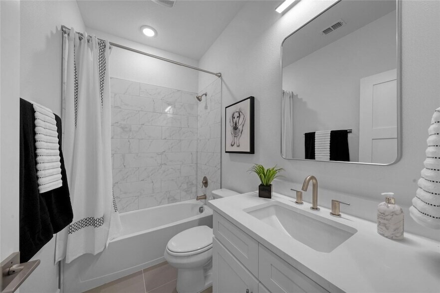 Available for immediate Move in! Newly completed, designer-finished townhome offering clean lines, modern luxury, and effortless style. Premium luxury vinyl plank flooring runs throughout, paired with sleek designer tile in the bathrooms and utility areas for a polished, contemporary look. The open-concept main living level impresses with 11-foot ceilings, oversized windows allowing an abundance of natural lighting. Stunning kitchen is anchored by a 12-foot quartz island, soft-close custom cabinetry, and modern hardware. The living area is elevated by a 72-inch horizontal fireplace, delivering both style and warmth. Goodland Townhomes is an exclusive, contemporary community of just 25 three-story luxury residences, thoughtfully designed for modern urban living. Prime location, just minutes from downtown Farmers Branch, this evolving area offers walkable access to restaurants, Cox Farms Market, and the DART Train system, parks, jogging & bike trails, and so much more! Photos are representative; finishes may vary by unit.