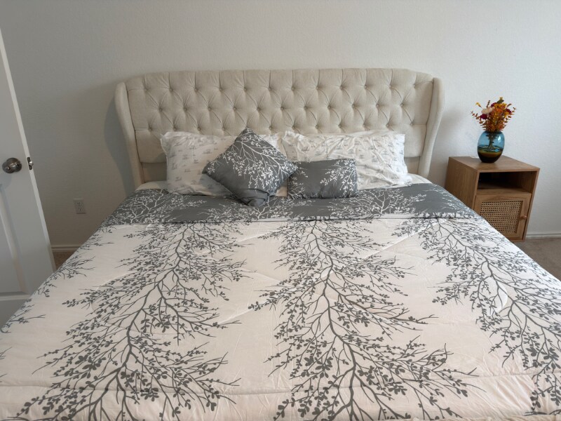 Property Id: 2204008 This first-floor retreat features a luxury bath (separate soaking tub + glass shower), private bathroom, walk-in closet, and a king bed with premium linens. Work comfortably at the standing desk with an ergonomic chair, and store more in the mirror-front wardrobe. Fast Wi-Fi, a quiet home, and thoughtful details make it perfect for you. Commute & Access • 25-35 min to Tesla, SpaceX, and (ABIA) The Home • 2,500 sq ft, newly built in 2024 • Spacious open kitchen & living room • Two living areas (upstairs & downstairs) House Amenities • Full kitchen + in-home laundry • Relaxed loft/game room • 2.5 bathrooms total in the home Neighborhood Perks • Gym • Pickleball • Disc golf • Pool • Walking, biking & running trails Ideal For A respectful, tidy WFH professional seeking a serene, furnished space with strong Wi-Fi and easy access to Austin-area employers.