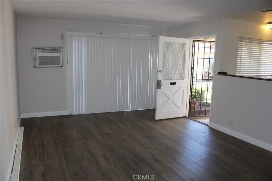 Rare Fullerton Condo Styled Apartment comes available! Fresh Paint and new carpet & flooring. This is an end unit, one story condo styled apt. Offers AC, two large bedrooms private patio and a one car garage. This quiet 8 plex has enjoyed long time tenants and is professionally managed. It is very rare that one of these unit comes available for rent. Close to downtown Fullerton, Metro Link, shopping and schools.
