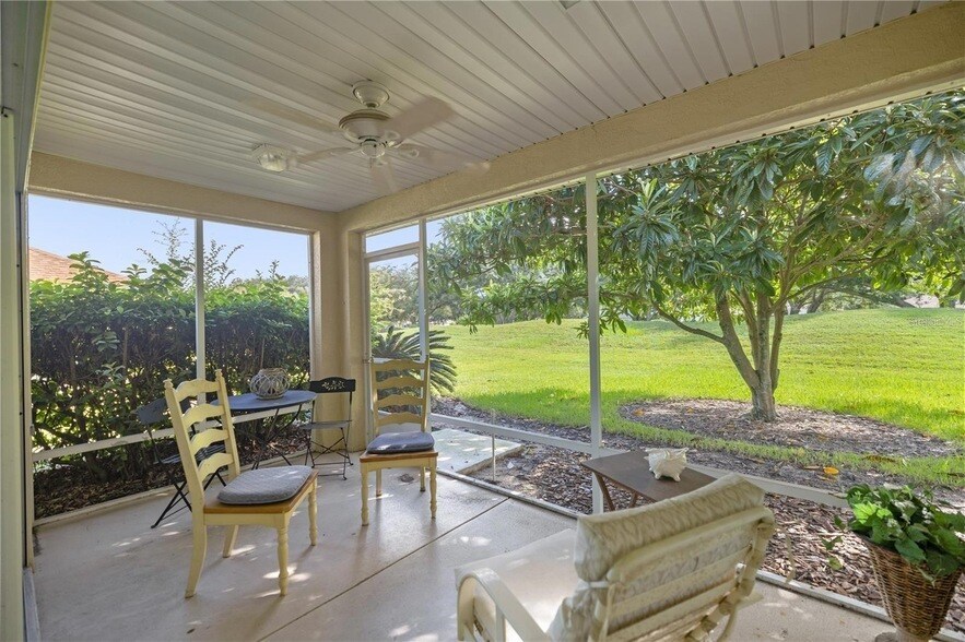One or more photo(s) has been virtually staged. One or more photo(s) has been virtually staged. Available for immediate move-in upon approval! This is an immaculate 2 bedroom/2 bathroom Alydar model located in the quiet and beautifully maintained 55+ Community of Del Webb Spruce Creek Golf and Country Club! Newer Roof and HVAC. As you enter the home, it features a spacious fully furnished living room with oversized sliding doors that lead to the screened-in lanai just waiting for you to relax in. The lanai is facing a gorgeous magnolia tree in the backyard to enjoy your morning coffee. The home is bright, airy, clean and open. Kitchen comes ready for its new occupants with a tons of cabinet space and a closet pantry fit for a chef! All kitchen appliances convey with the home. There is no shortage of natural light with the abundance of large windows throughout this beautiful home. A separate utility room contains the Washer and Dryer and leads into the attached garage. Washer and Dryer are to stay with the home. The guest bedroom features a shiplap wall for extra style and uniqueness as well as its own smaller walk-in closet and sits right next to the full guest bathroom. The master bedroom features decorative trim behind the king sized bed and gives it an up-scale feel (gold bedding in master bedding do not stay). Grab a golf cart and roam the golf cart paths in the evenings after its cooled down. Attached to the master bedroom boasts an incredible master en-suite bathroom complete with a full shower, dual sinks and a HUGE walk-in closet!!! The home sits along a walking/golf cart path and is very close to the golf course! Residents of Spruce Creek receive discounted rates to golf! Spruce Creek is the perfect place to live and features so many amenities included a 24-7 manned guarded community gate, use of community fitness center, all 3 pools/hot tubs, bocci ball courts, horseshoe and volleyball/tennis/pickleball courts. Spruce Creek even has softball fields with teams that play regularly! There is never a shortage of activities and clubs all year long! Spruce Creek is conveniently located to shopping, hospitals and sits right outside The Villages! No Smoking, Pets are negotiable. First/Last/Sec Deposit/App Fee required.