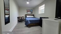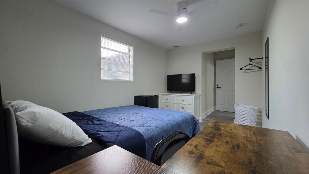 Property Id: 2437054 Sun-Drenched Private Room with Bedside Power & Workspace - Near Universal & Millenia The Private Space: Welcome to a freshly renovated, bright private bedroom designed for those who appreciate a clean and minimalist living environment. This room is move-in ready and optimized for both relaxation and productivity. Bedside Convenience: Features a modern bed with a built-in headboard console that includes integrated power outlets and USB ports, allowing you to charge your tech right from your bed. Functional Workspace: Includes a dedicated desk and chair setup, perfect for managing your daily tasks or studies in a quiet setting. Personal Amenities: Your room is equipped with a Smart TV for private streaming and a personal mini-fridge for convenient access to your own food and drinks. Light & Air: A large window provides plenty of natural light, complemented by a modern ceiling fan and stylish wood-style flooring. Storage: Includes a vertical storage rack/closet system and a full-length mirror. The Shared Experience (1343 Poppy Ave.): Enjoy a high standard of community living with shared facilities that take the stress out of daily life: Shared Bathroom: Full access to a modern, professionally cleaned bathroom shared with housemates. Gourmet Kitchen: Access to a fully equipped kitchen featuring upgraded appliances, a Keurig coffee station, and all basic cookware provided. All-Inclusive: No hidden costs! Rent covers high-speed Wi-Fi, electricity, water, and trash. Maintenance: We include a professional cleaning service for all common areas, ensuring a pristine environment for all residents.