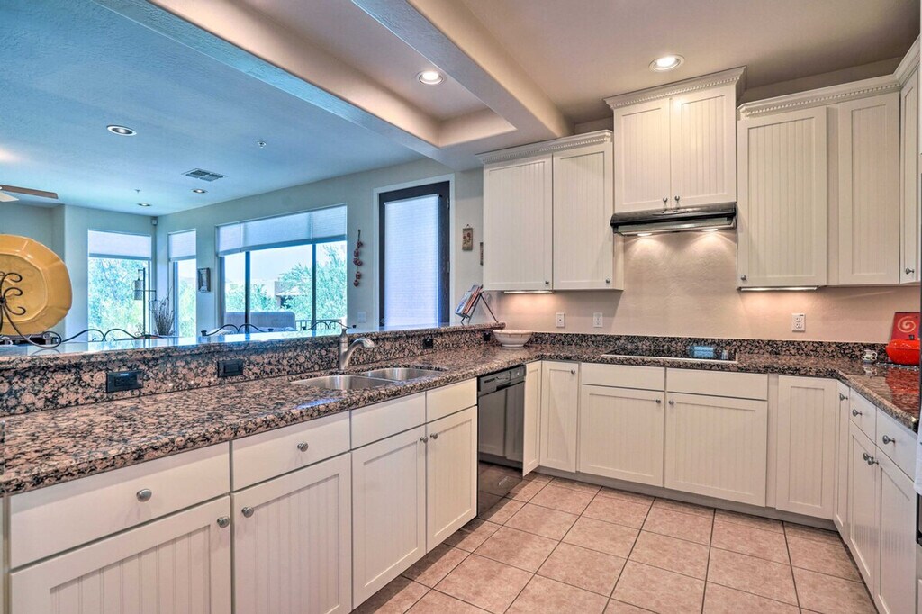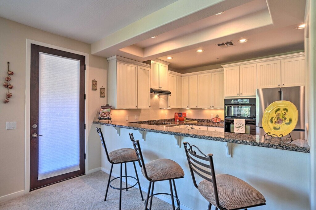Escape to the sun and desert beauty and feel at home in this Scottsdale vacation rental. This 1-bedroom, 1-bathroom unit features a spacious layout. This well-appointed condo has all the amenities you need to make it your home-away-from-home, including a fully equipped kitchen with granite counters, double ovens, a 3-person breakfast bar, a pass-through window, and a drip coffee maker. Enjoy the flat-screen Smart TV, 4-person table, gas fireplace, recessed lighting, comfortable seating, picture windows, washer/dryer, linens/towels, furnished terrace with seating, free Wi-Fi, and central air conditioning. Community amenities include a pool, fitness center, gas grills, a community room with a pool table and TV, Lost Dog Trailhead, and Sunrise Trailhead. Garage parking for one vehicle and driveway parking for one vehicle are available. With on-site trails and easy transit to the Mayo Clinic, the lush greens at Fountain Hills, and Cactus League spring training fields, this condo makes it easy to adjust to vacation time. The property requires stairs and may be difficult for guests with limited mobility. No campers, boats, RV's, or commercial vehicles are allowed, and no trailers are allowed on the street or in the garage. No smoking, pets, events, parties, or large gatherings are permitted. Additional fees and taxes may apply, and a photo ID may be required upon check-in. [SI]