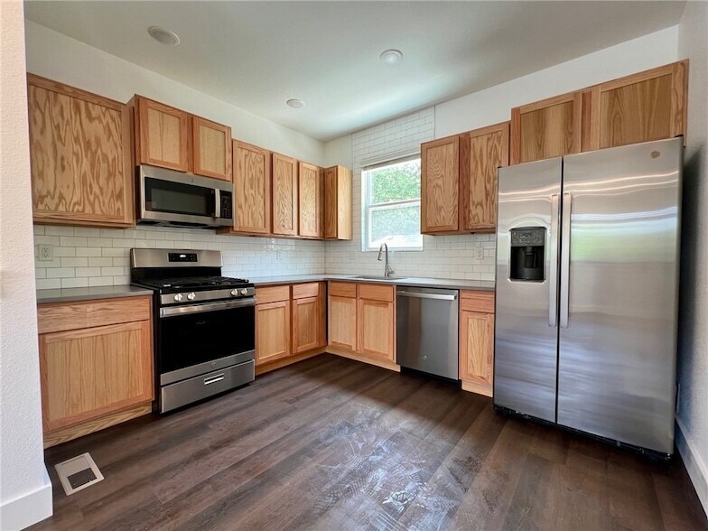 Nice newer modern townhomes near U of A campus! Home features 1 bedroom, 1 full bathroom, 2 car garage, LVP throughout, granite countertops, ss appliances, large tiled shower, & all appliances included. Come take a look.