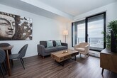 Located in the bustling downtown core of Montreal, adjacent to the Bell Centre, this property epitomizes luxury and practicality, setting a new benchmark for urban living, especially tailored for young professionals, newcomers, and students. Situated mere steps away, you will enjoy easy access to the attractions of the Golden Square Mile and the historic charm of Old Montreal. This development fosters an environment ideal for both academic pursuits and professional development. This new condo is very well located near the Bell Centre, just steps away from the Golden Square Mile’s attractions. It features three bedrooms with one queen bed and two double beds, and two bathrooms. Indoor parking with in and out privileges is available for a separate fee depending on your length of stay. We offer a variety of cleaning services that include bi-weekly or monthly options, available for an extra charge. Situated mere steps away, you will enjoy easy access to the attractions of the Golden Square Mile and the historic charm of Old Montreal. This development fosters an environment ideal for both academic pursuits and professional development. No parties of any kind or loud noises that can alter the harmony of residents are allowed. No smoking of cannabis, cigarettes, or any kind inside the apartment, balcony, or the building. Please care about your home away from home. The apartment offers shared workspaces, a conference room, and a workspace with a view, making it ideal for remote work.