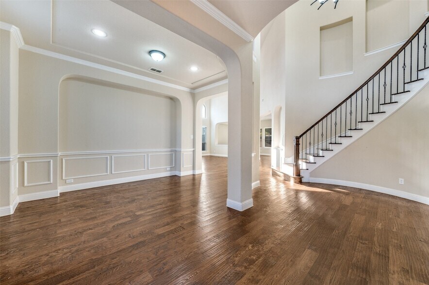 Location. Luxury. Lifestyle. This is the home you ve been waiting for. Nestled in the sought-after Richwoods gated community & zoned to top-rated Frisco ISD, this stunning north-facing home blends refined elegance with thoughtful functionality. The home offers exceptional curb appeal, framed by manicured landscaping that warmly welcomes you home. Inside, soaring 21-foot ceilings & abundant natural light create an immediate sense of openness & warmth. From the grand rotunda entry, your view flows effortlessly across the formal living area, private office, family room, & expansive dining space each thoughtfully designed for comfort & connection. The chef s kitchen is the heart of the home, featuring extensive cabinetry, a nearly 12-foot island perfect for gathering, stainless steel appliances, glass backsplash, & a spacious walk-in pantry combining beauty with everyday functionality. Designed for modern living & multi-generational comfort, the home includes two en-suite bedrooms on the main floor, ideal for guests, aging parents, or young children. A private office supports work-from-home needs, while the upstairs game and media rooms create spaces for relaxation & entertainment. Step outside to your backyard retreat featuring a covered patio, ambient lighting, & lush landscaping perfect for hosting dinners or enjoying peaceful evenings under the stars. Families will appreciate the convenience of Frisco Independent School District schools, including Tally Elem. and Lawler Middle, both accessible from within the community so children can walk or bike safely without leaving the gates. With 4 bedrooms, 4 bathrooms, a private office, media room, & game room, this home offers space to live, work, and thrive. Ideally located minutes from Legacy West, Shops at Legacy, major highways including 121 & the Dallas North Tollway, and corporate headquarters such as Toyota Motor North America, Capital One, JPMorgan Chase, and FedEx.