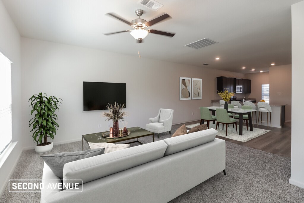 This spacious 5-bedroom, 2.5-bath home features an open-concept main floor. The gourmet kitchen boasts granite countertops, ample storage, energy-efficient Whirlpool appliances, and a massive pantry. Plush carpet and luxury vinyl plank flooring add a modern touch. Upstairs offers flexible space for a playroom, office, or lounge, plus a convenient laundry room and walk-in closets in every bedroom. The primary suite includes granite counters, a walk-in shower, and a soaking tub. Enjoy weekends in the large, fenced backyard. Professionally managed by Second Avenue. Contact us to tour and apply online today! LOCATION: Nearby attractions include Goober Bubs Orchard & Bakery and South Lakes Park, while major roads nearby include Highway 380, Mineral Road, and Roosevelt Arch Drive SCHOOL DISTRICT: Ponder Independent School District. OUTDOOR SPACE: 2-Car garage, Paved driveway, Covered patio, Fenced yard COMMUNITY AMENITIES: Splash pad, playground, picnic areas, soccer field, and dog park. Second Avenue is proud to offer the Hometown Hero Leasing Discount Program to honor and support local heroes, including police officers, firefighters, emergency medical personnel, educators, and government employees. Eligible participants who are fully approved for a lease will enjoy a reduced security deposit on their Second Avenue home. This offer cannot be combined with other promotions or discounts unless otherwise specified. Available in Select Markets - Ask About Eligibility. By choosing a professionally managed rental home by Second Avenue, you'll enjoy personalized services such as our all-in-one resident portal, dedicated call center, and professional maintenance program. All Second Avenue homes are pet-friendly (pet fees and breed restrictions apply) and we offer convenient self-guided showings 7 days a week. We also proudly offer military discounts for active-duty personnel. Visit to apply online, review qualification criteria, and search for additional homes; or contact our leasing team for more information. Additional fees may include, yet not limited to septic/sewer, or renters insurance. Approved applicants must pay a hold fee and begin the lease agreement within 7 to 12 days of approval. Don't delay, as our homes lease quickly! Please be aware of scams. Second Avenue does not advertise on Craigslist, Facebook Marketplace, or any other classified advertising websites. We will never ask you to wire funds. Applications and lease signings are completed only through . All photos shown are for illustrative purposes. Certain finishes, flooring, and room orientation may vary.