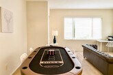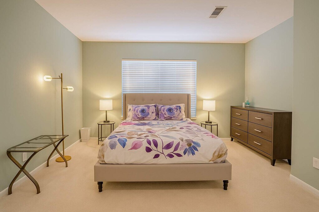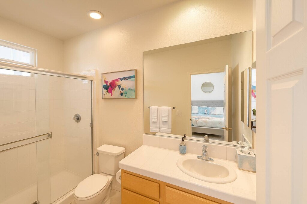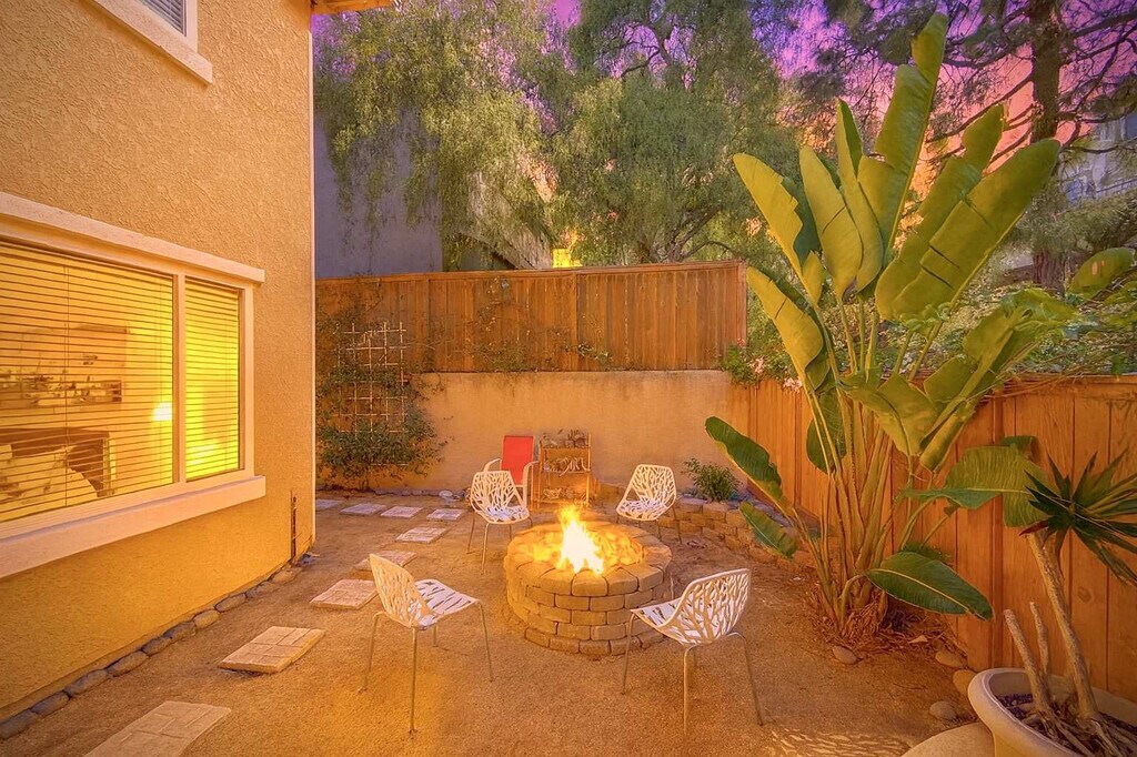 Soak up the California sunshine in this beautifully renovated 5-bedroom, 4-bath home in Del Mar Heights. Perfect for families, work-from-anywhere guests, or extended stays, this spacious escape features smartly designed interiors, multiple living areas, and a lush, pet-friendly backyard with outdoor dining options. Just minutes from beaches, parks, and upscale shopping, you’ll feel both connected and tucked away. The primary suite offers a king bed, chandelier, en-suite spa bathroom, and French doors to a private balcony. The second bedroom is a large room with a king bed and rich finishes, while the third bedroom features a king bed with luxe navy and blush tones. The fourth bedroom has a queen bed with designer lighting, and the fifth bedroom, which can also serve as an office, includes a queen bed, ideal for kids or extra guests. The spa-inspired primary bath includes a soaking tub and dual vanities, complemented by three additional full bathrooms with modern finishes. The fully equipped kitchen boasts updated appliances, a coffee maker, cookware, and essentials, with a dining space perfect for family meals or group dinners. Two separate living rooms with smart TVs, modern fireplaces, and vibrant, stylish décor make it ideal for entertaining, lounging, or working remotely. The fenced backyard features a pergola-covered dining area, climbing vines, and faux grass for low-maintenance enjoyment, along with an outdoor firepit and a large barbecue grill. A second-story balcony offers peaceful neighborhood views, perfect for morning coffee or sunset wine. The home also includes a washer/dryer in the garage and two off-street parking spots plus two garage spots. The home is pet-friendly, offering a lush backyard for your furry friends to enjoy. Del Mar Heights is one of San Diego’s most sought-after neighborhoods—safe, serene, and close to everything. Nearby favorites include Torrey Pines State Beach and Del Mar Beach, just a 10-minute drive away, and parks like Carmel Creek Park and Torrey Hills Park. Golf enthusiasts will appreciate the proximity to Torrey Pines Golf Course, only 15 minutes away. Shopping and dining options are abundant at Del Mar Highlands Town Center and One Paseo, just 5 minutes away. Major attractions such as the San Diego Zoo, SeaWorld, and LEGOLAND are approximately 30 minutes away. Whether you’re a family, relocating guest, or here for leisure, you’ll love the balance of upscale living and easy access to nature, culture, and entertainment. The home offers quick connections to I-5, Hwy 56, and I-805, with San Diego International Airport just 18 miles away. Ride-share options like Uber, Lyft, and taxis are easily available, and rentals for e-bikes, scooters, paddleboards, and surfboards are nearby. Guests can enjoy complete privacy during their stay, with the reassurance that our friendly support team is always just a call or text away. Our 24/7 guest support line is available for any questions, recommendations, or assistance to ensure a smooth and enjoyable experience. For your security and a seamless check-in, government-issued photo ID verification will be required prior to arrival. Outdoor quiet hours are from 10 pm until 8 am, seven days a week. High-speed Wi-Fi is available for remote work, streaming, or Zoom calls, with multiple seating areas perfect for kids, coworkers, or quiet time. Registration Number: STR-12166L [SI]