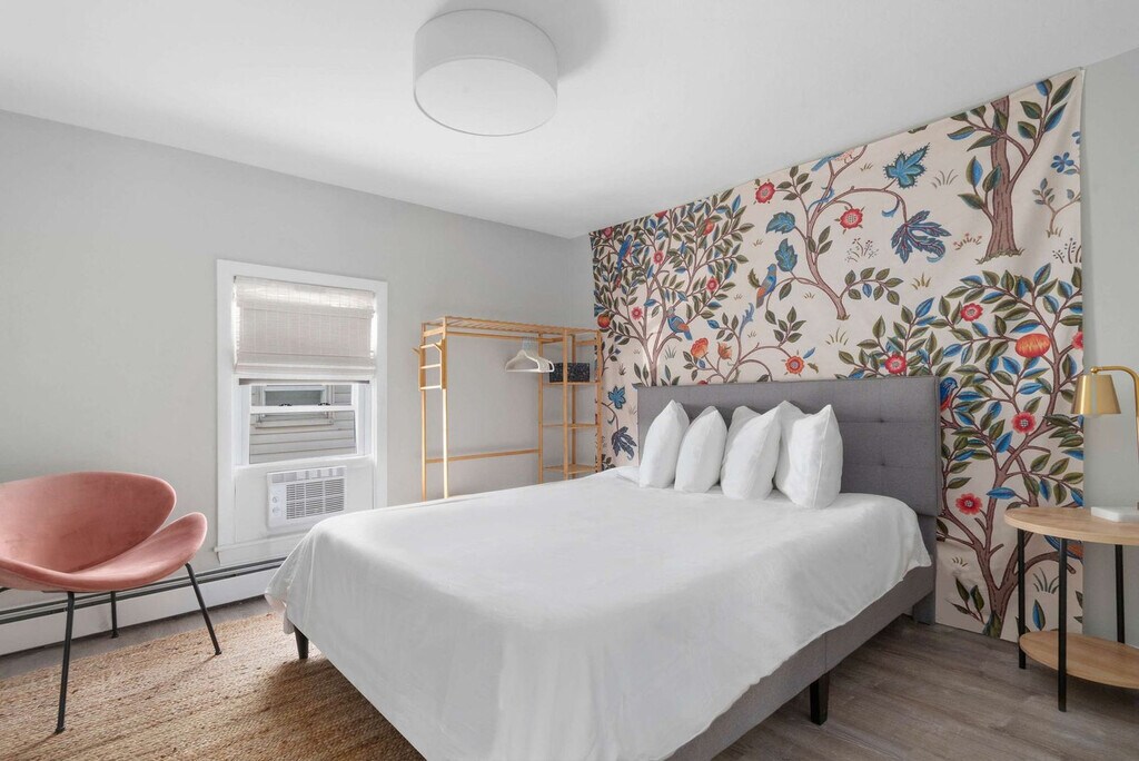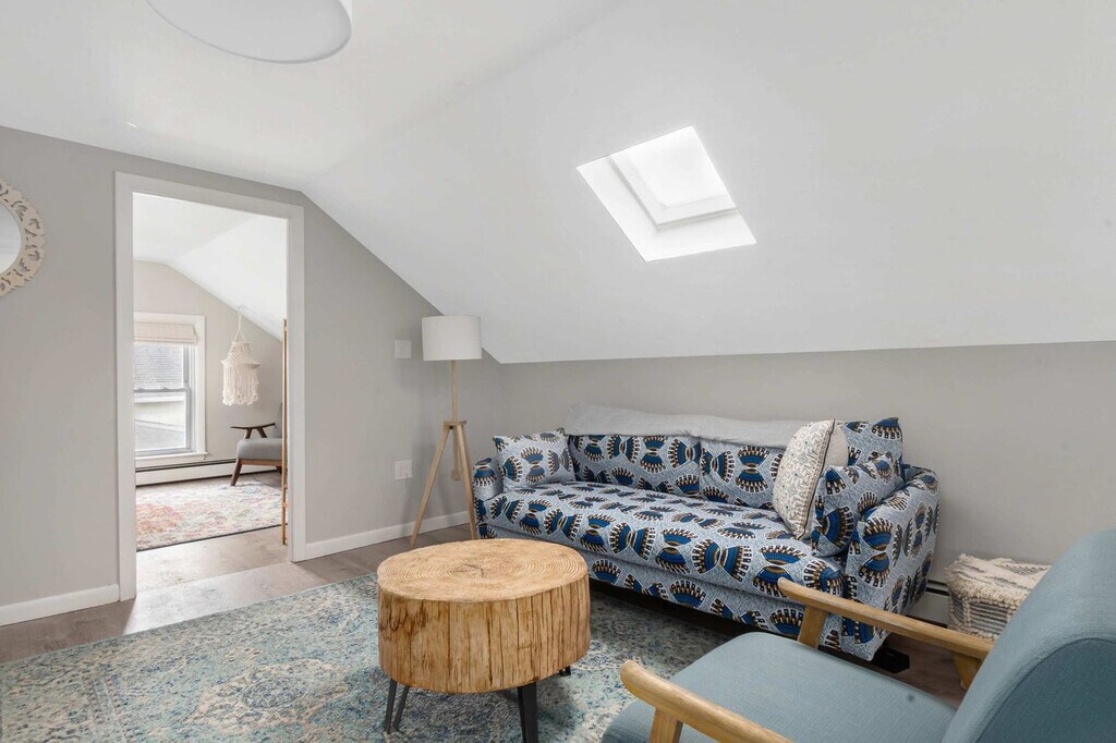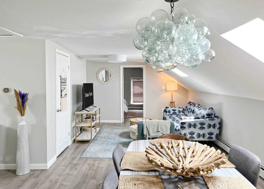 The advertised rate of $3,062/month is the lowest available price, based on a 1 month(s) and 2 day(s) stay with a move-in date of February 26, 2026. Rates vary depending on the duration of stay, season, and other parameters. For exact pricing and additional pricing components, please visit our website and enter your desired move-in and move-out dates. The rate is applicable when billed upfront; it can be higher if billed in multiple payments. Feel at home in The Return to Water, a third-floor, top-floor residence in a four-unit destination within The Return’s curated collection of design-forward stays, located in Historic Downtown Warren, Rhode Island. This charming communal retreat features skylit ceilings, an open communal plan, and an airy loft-like feel, offering a place to come together, spread out, and experience Warren from above. The open-plan living space features modern velvet sofas, generous room to linger, and abundant natural light pouring in through skylights. The fully stocked kitchen is designed for easy meals and shared moments, and includes high-end stainless steel appliances, a large refrigerator, ample cabinetry and prep space, and coffee options including a Keurig and drip coffee maker. A dedicated workspace is available. Guests have access to a beautifully designed shared spa area on the ground level, featuring a 6-person hot tub, sauna, fire pit, and outdoor shower. The space is fully fenced for added privacy. Up to two dogs are allowed for a fee of $125 per stay. Private parking for two cars is available on site, with additional parking available in the adjacent lot in front of the Italian American Club. Located in a lively, vibrant part of town, you may hear the usual sounds of city life from time to time. Explore nearby attractions such as Warren Town Beach (0.9 mi), Barrington Beach (2.3 mi), Burr’s Hill Park (0.6 mi), Touisset Marsh Wildlife Refuge (3.5 mi), and Downtown Warren (0.1 mi). Enjoy local restaurants like Blount's Clam Shack (0.6 mi), The Wharf (0.2 mi), Trafford Restaurant (0.3 mi), The Revival Craft Kitchen & Bar (0.4 mi), and Waterdog Kitchen + Bar (0.3 mi). This apartment is one of four units within the building, so there may be light noise from neighboring guests. This is a historic property, and some of the stairways are naturally narrow and steep, so please use caution when navigating them. Due to the age and character of the home, the doors may stick slightly during warmer months. No cats are allowed. Dogs must be crate-trained, and guests are responsible for cleaning up after their pets. No parties or events are allowed, and violations may result in immediate termination of the stay. Check-in is at 4:00 pm and check-out is at 10:00 am. Failure to follow parking instructions may result in an additional fee. Includes a dedicated workspace. Registration Number: RE.00521-STR [SI]