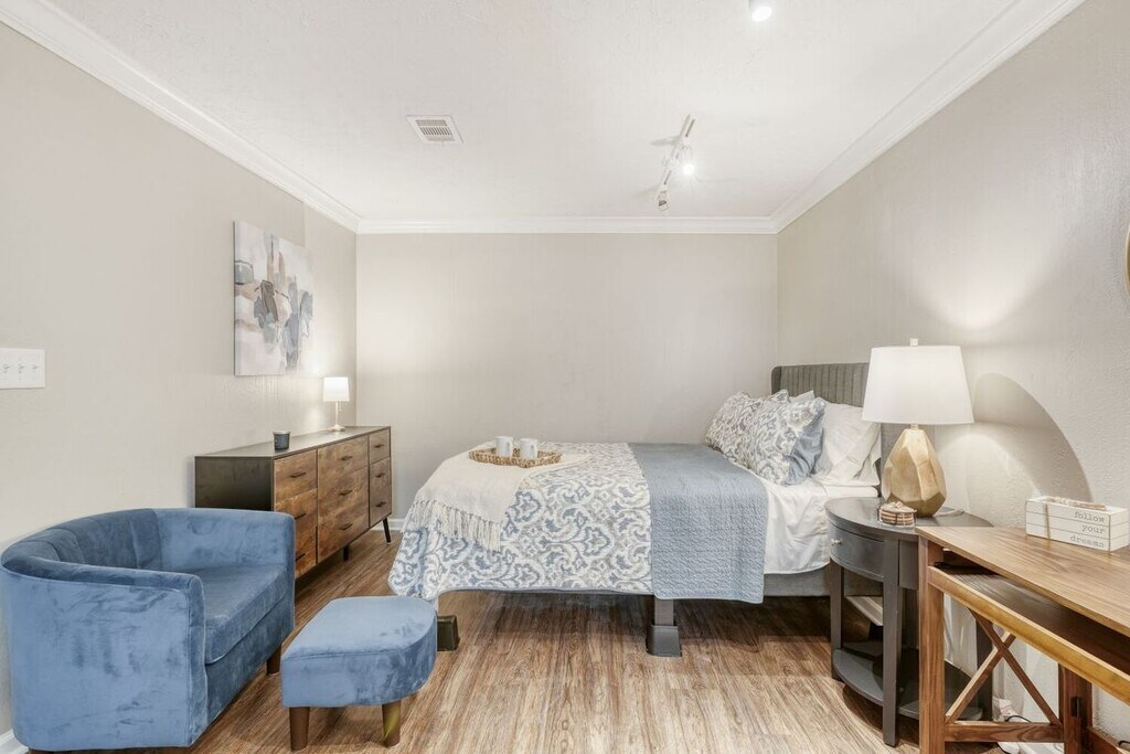 Welcome to 136 River Walk, your private modern retreat in Douglasville, situated on a generous lot with room to enjoy outdoor space. Fully Furnished, elegant 1BR/1BA Basement Apartment with all utilities included (water, sewer, electricity, gas, trash). This renovated terrace-level apartment offers a clean layout with an open living area, full kitchen, full bathroom, and a bedroom space designed for comfort and easy living. This unit also has a private entrance, a spacious fenced-in backyard, and a washer and dryer for added everyday convenience, located in the garage near your dedicated parking space. Conveniently located near shopping, dining, restaurants, with easy access to major roads and the interstate. No animals, furnished, and all utilities included. MOVE IN READY.