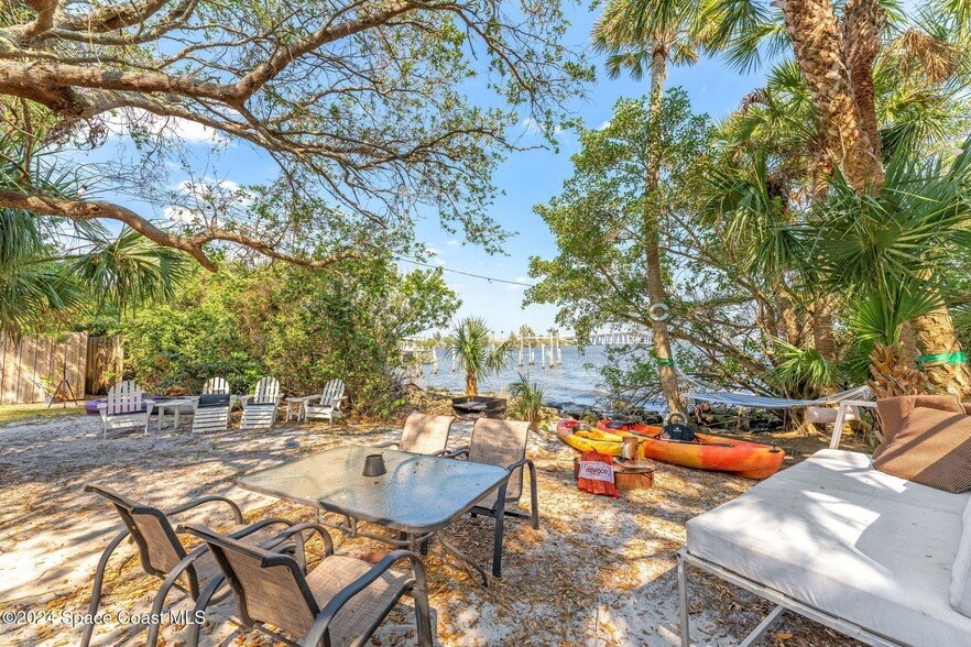 Available: March 1 2026 Long and Short term FURNISHED rental available. Utilities are an additional $200 monthly fee. Set on a picturesque 1/2 acre property and boasting 126 feet of pristine water frontage, experience the epitome of RIVERFRONT living with this charming, FURNISHED, 1 bedroom 1 bath, north end unit of the main house. NO-HOA. This home is a rare find. Nestled on the exclusive south end of Pineapple Ave and near the vibrant Eau Gallie Arts District, you're near the beaches, upscale shopping and restaurants, airports, the space center, Port Canaveral, Cocoa Beach, Disney World, and other world class attractions. Featuring a NEW ROOF and upgrades that include NEW ELECTRICAL and NEW PLUMBING, bathroom, cooling system, wraparound outdoor decking, wood fencing, small pool, walkways and more. This property is great for whether you're seeking a short term or long term rental.