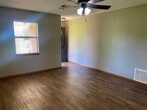 Move in ready - 3 bedrooms with 1.5 baths. Nice flooring throughout. Refrigerator, oven, dryer provided. 1 Car garage and a large backyard. Nice home!