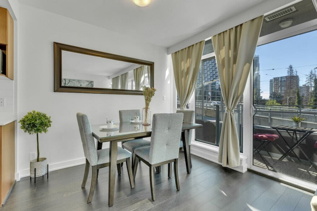 The advertised rate of C$4,254/month is the lowest available price, based on a 1 month(s) stay with a move-in date of April 30, 2026. Rates vary depending on the duration of stay, season, and other parameters. For exact pricing and additional pricing components, please visit our website and enter your desired move-in and move-out dates. The rate is applicable when billed upfront; it can be higher if billed in multiple payments. This 1-bedroom condo is located in a very convenient and central area in downtown Vancouver, just steps away from the water, several parks, and event buildings. Enjoy a small patio with views overlooking the Granville Bridge and some unique Vancouver buildings. This home comes with a queen bed and a full pull-out couch. A smart TV sits in the living room for entertainment and a full kitchen for all your cooking purposes. Located in the Downtown area of Vancouver, near the crossroads of Seymour Street and Pacific Street, The Mark is within walking distance to parks and event centers such as George Wainborn Park, Roundhouse Community Center, Emery Barnes Park, Vancouver International Film Centre, BC Place, and Contemporary Art Gallery. It is also nearby essential stores and coffee houses such as Choices Market, Starbucks Coffee, Blenz Coffee, and Shoppers Drug Mart. You can also walk over to nearby fitness studios such as Exhale Yoga Pilates and Dance Studios, YYoga, and 24-7 Fitness in Yaletown. Established restaurants in the neighborhood include La Terazza, Games Big Fish, Earls, Yaletown Keg Steakhouse and Bar, Urban Thai Bistro, Cactus Club Cafe, Fresh Japanese Takeout, Drew Cooks, and much more. The bus stop is near the complex, and Yaletown-Roundhouse Skytrain Station is less than a 5-minute walk from the complex. For a scenic walk, consider strolling over the Granville Street Bridge to one of Vancouver's most beloved attractions, Granville Island, where there are tons of activities and shops. It is a 20-minute drive from YVR Airport, a 2-minute walk to the grocery store, a 2-minute walk to the pharmacy, a 5-minute walk to the seawall and waterfront, a 2-minute walk to the bus stop, and a 10-minute walk to Downtown City Center and Skytrain. No pets, no smoking anywhere on the property, no parties, and quiet time after 10:00 PM. [SI]