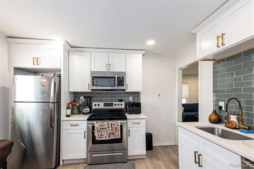 Come see this recently renovated house. Starting outside the siding has been painted, the rood is 6 months old and there is a 2 car garage with a storage area in the back. The inside was painted with LVT flooring added throughout. The updated kitchen has new cabinets, newer stainless steel appliances, gorgeous subway tile backsplash and granite counters. The bathroom has stylish tile in the shower, tile floors and a new vanity. The living room has been painted and a wall fireplace has been added. This is just a cute house and ready for its' new tenant. Alarm system will stay but requires a monthly service fee that can be transferred to the new tenant. Make your appointment today. ( photos prior to tenant move out )