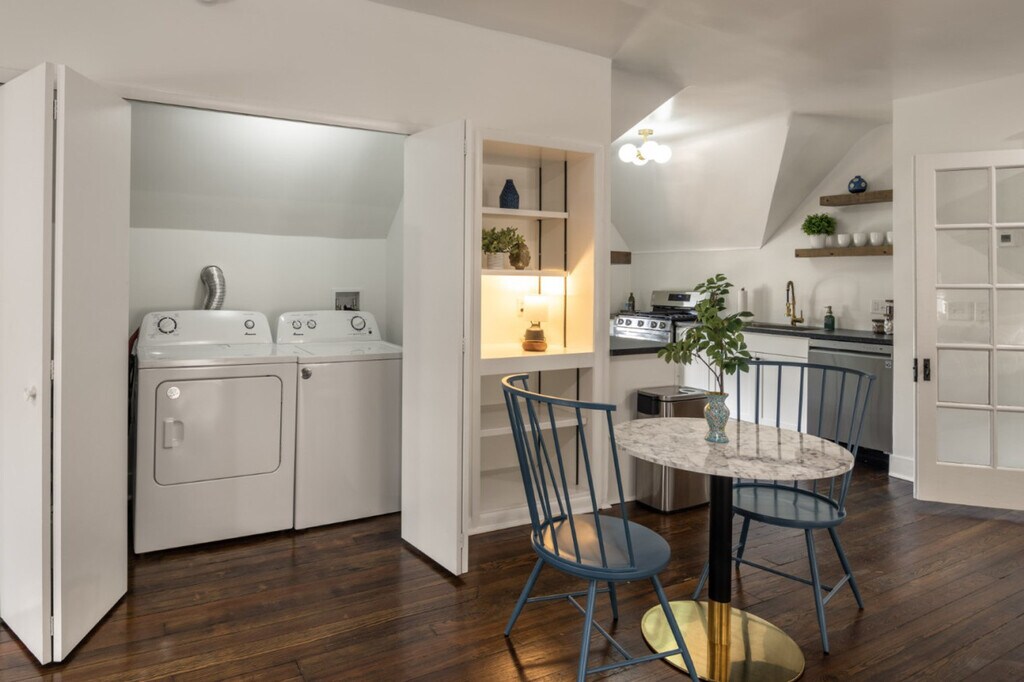 The advertised rate of $1,609/month is the lowest available price, based on a 30 day(s) stay with a move-in date of March 28, 2026. Rates vary depending on the duration of stay, season, and other parameters. For exact pricing and additional pricing components, please visit our website and enter your desired move-in and move-out dates. The rate is applicable when billed upfront; it can be higher if billed in multiple payments. This one-of-a-kind, stylish, and spacious studio is a perfect home for your Cincinnati experience. Whether you're a travel nurse looking for a long-term stay or an urban adventurer in for a concert or catching a game, you'll find that this studio is peaceful, cozy, clean, and central to everything. Located on the third floor, you will need to climb stairs to access the apartment. This home boasts an in-unit washer and dryer, a cozy queen bed nook, a living area, bistro table, dedicated work desk, lounge spot, and best of all, a unique turret room for relaxing. Walk to great coffee and pastries at Urbana, an amazing cocktail at Anjou, and a delicious meal at Solstice. Centrally located near downtown, OTR, UC, XU, the Zoo, and area hospitals. Enjoy easy access (5-10 minutes) to all stadiums including Paycor Stadium, TQL Stadium, Great American Ballpark, Andrew J. Brady ICON Music Center, and Bogarts. For travel nurses or doctors, Cincinnati Children's Hospital is 2 miles away, UC Medical Center is 1.9 miles away, Christ Hospital is 2.4 miles away, St. Elizabeth Ft Thomas is a 13-minute drive, and Jewish Hospital is a 16-minute drive. Parties and amplified music are strictly forbidden without advance written consent. Unauthorized parties may result in prosecution for criminal trespass under Ohio Revised Code and Cincinnati municipal code. Quiet hours are from 9:30pm-8am. Smoking and lighting anything in the property is not allowed. Violating house rules may result in reservation termination without refund. A $300 cleaning fee applies for smoking indoors, and a $170 re-keying fee applies for unreturned keys. Additional fees may apply for excessive pet hair, stains, and deep cleaning for stays longer than 14 days. Registration Number: 281751 [SI]