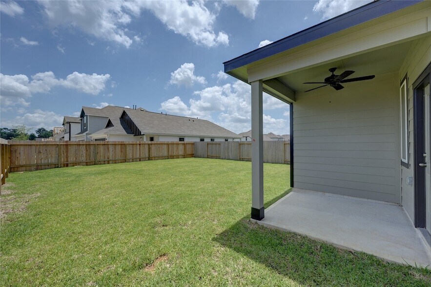 Barely lived in home available for inmediate move-in with highly rated Conroe IDS schools. This unique floor plan features one spacious bedroom downstairs with its own full size bathroom that could be your guest bedroom or mother in-law suite. No carpet downstairs and a very confortable open floor plan where the kitchen, dining room and living room are all in one big area. The home seats in the corner of an oversized lot with a fully sprinkled backyard. Upstairs there is a very nice foyer area in the middle of the three bedrooms. The primary has a separate shower and bathtub, double sinks and a Texas-sized closet. The secondary bathroom upstairs feaures double sinks and a shower tub combo. Rivers Edge is a recently built community very well taken care of and offers a pool house and a playground. Refrigerator, washer and dryer are included!