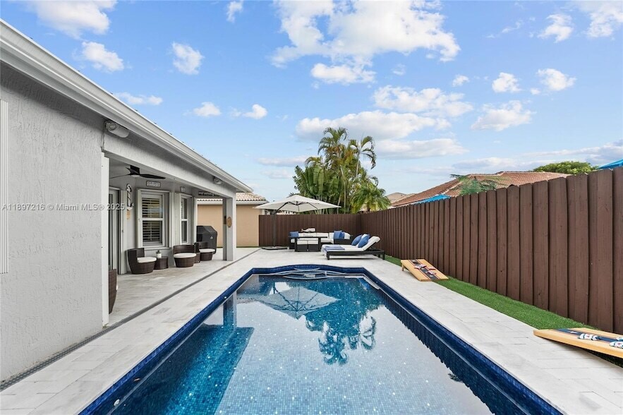 Welcome to our beautifully remodeled home with a stunning glow-in-the-dark pool!. This fully renovated gem is located in a desirable Miami neighborhood. This spacious residence features 3 bedrooms, 2 bathrooms, plus an office nook, perfect for working from home. Enjoy a modern kitchen with stainless steel appliances, elegant finishes, and plenty of natural light throughout. Accordion shutters provide full hurricane protection and peace of mind. The backyard is a dream for entertainers with a one-of-a-kind glow-in-the-dark pool, perfect for nighttime relaxation and gatherings. Additional highlights include a 2-car garage and an open, inviting layout. Truly a move-in-ready home that combines style, comfort, and functionality!