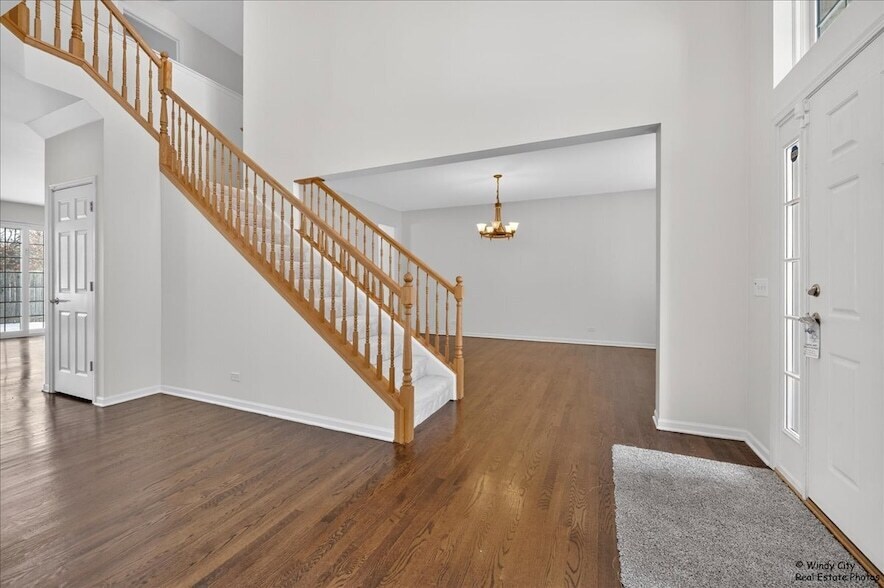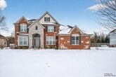Luxurious custom home featuring a dramatic two story foyer, double staircase, and hardwood floors throughout. Expansive kitchen with large eating area, 42 inch cabinets, granite countertops, and stainless steel appliances. Spacious family room with fireplace. First floor bedroom ideal for guest room or home office. Upstairs offers generously sized bedrooms with Jack and Jill bathroom. Primary suite includes separate shower and Jacuzzi tub, dual sinks, and two walk in closets. Semi finished basement with home theater provides additional living and entertainment space. Exterior highlights include a wooden deck and a generously sized backyard, perfect for outdoor enjoyment.