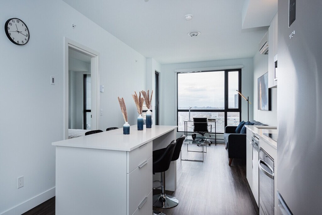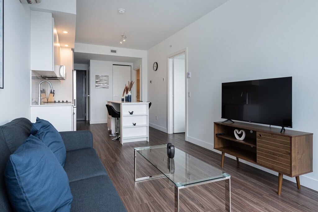 Located in the bustling downtown core of Montreal, adjacent to the Bell Centre, this property epitomizes luxury and practicality, setting a new benchmark for urban living, especially tailored for young professionals, newcomers, and students. Situated mere steps away, you will enjoy easy access to the attractions of the Golden Square Mile and the historic charm of Old Montreal. This development fosters an environment ideal for both academic pursuits and professional development. This new condo is very well located near the Bell Centre, just steps away you have access to the Golden Square Mile’s attractions. It features 1 bedroom with a queen bed and 1 bathroom. Indoor parking with in and out privileges is available for a separate fee depending on your length of stay. We offer a variety of cleaning services that include bi-weekly or monthly options, which are available for an extra charge. Situated mere steps away, you will enjoy easy access to the attractions of the Golden Square Mile and the historic charm of Old Montreal. This development fosters an environment ideal for both academic pursuits and professional development. No parties of any kind or loud noises that can alter the harmony of residents are allowed. No smoking of cannabis, cigarettes, or any kind is permitted inside the apartment, balcony, or the building. Please care about your home away from home. Shared workspaces, a conference room, and a workspace with a view are available for your professional needs.