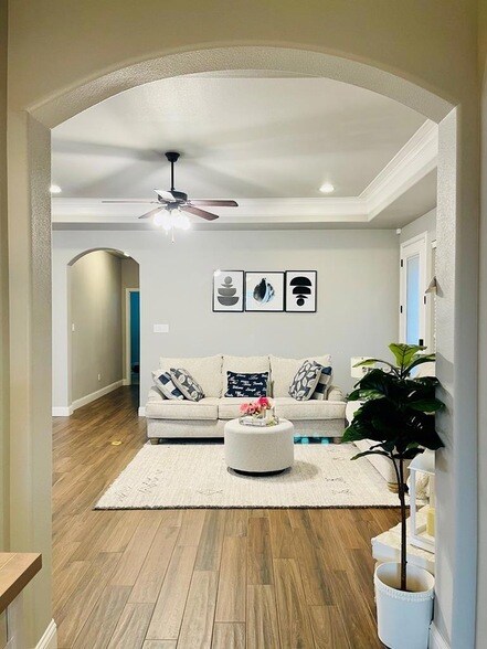 Limited Offer! 50% Off 2nd Month's Rent! Unfurnished furnished photos show potential use of space. Stunning 3BR/3BA home in Enclave at Mission Ranch (Midland ISD) with 2 master suites, 4 walk-in closets, high tray ceilings, crown molding & tile floors. Chef's kitchen boasts granite countertops, stainless steel appliances, dual ovens, gas cooktop, LG fridge, RO & softener. Austin stone fireplace, gas heating, tankless water heater, smart thermostat, sprinklers, and garage. Huge, 8-ft fenced backyard with extended patio, lush lawn, gas line & garden bed. Easy commute to both Midland & Odessa