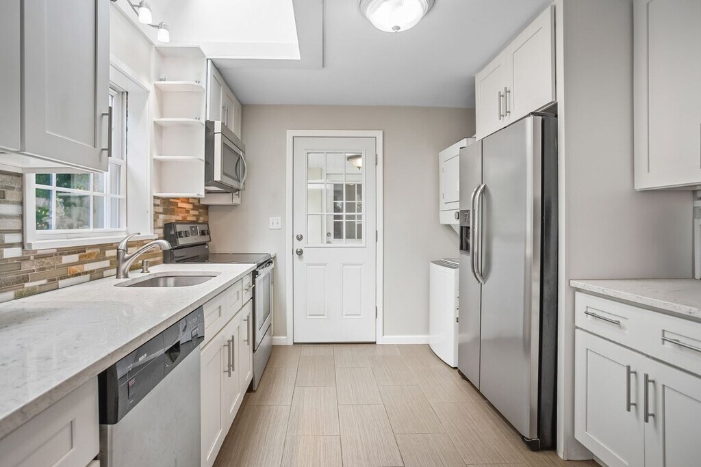 Call Flex terms unfurnished rental. Welcome to this beautifully renovated and charming cottage, a perfect rental nestled in the heart of town! Modern kitchen with newer cabinets, sleek appliances, hardwood flooring, and stunning quartz countertops. You'll love the spacious living room with custom built-ins and large sliding glass doors that fill the space with natural light all day long. Three generously sized bedrooms featuring ample closet space, two fully renovated baths, and hardwood floors throughout, this home offers both comfort and style. This home is pet friendly. Outside, enjoy a private oasis a completely fenced-in, level backyard ideal for entertaining, with a deck perfect for gatherings or quiet evenings outdoors. The house is set back from the road for added privacy. The location is unbeatable just a short walk to restaurants, shopping, and more. The attached garage adds convenience on rainy days. Don't miss this opportunity to live in a sweet, beautifully updated home in a prime location! Tenant pays utilities and lawn care Call