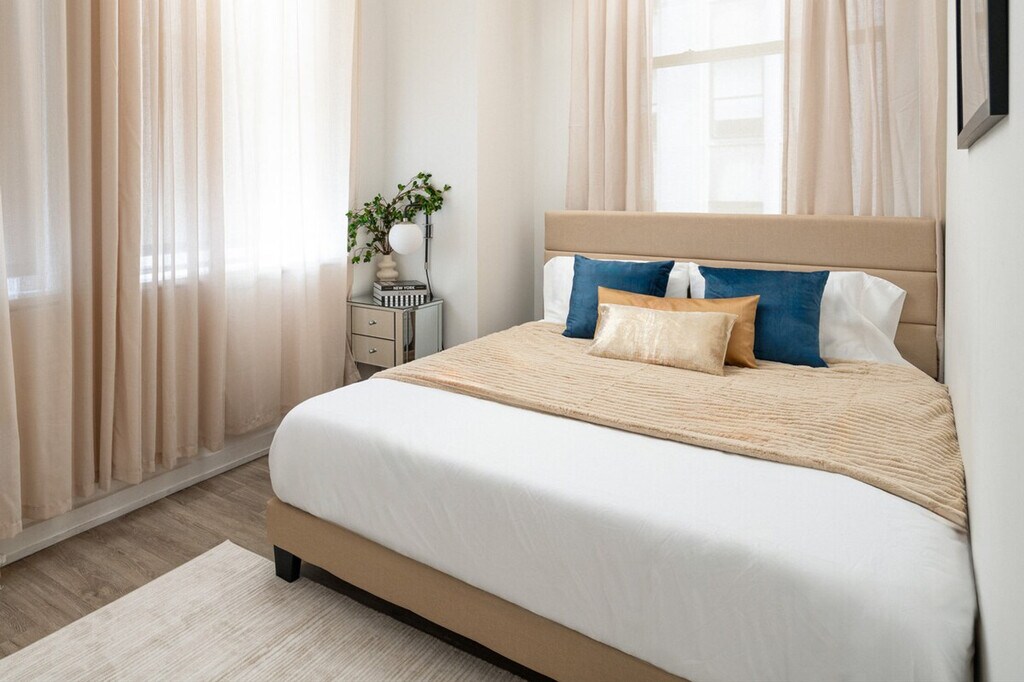 Welcome to this chic apartment located in the prime Financial District neighborhood of Manhattan. Experience the epitome of style and comfort in this full-service amenity building, complete with a gym, rooftop terrace, and dedicated concierge service. Feel at home with everything you need for a truly enjoyable stay, from high-speed Wi-Fi to luxurious robes. Enjoy close proximity to Wall Street, the World Trade Center area, and multiple train lines. Indulge in the luxury of this beautifully decorated apartment boasting two cozy bedrooms, each furnished with a comfortable queen-size bed and luxurious linens. The modern bathroom offers a relaxing bathtub and an abundance of fluffy towels. In the fully equipped kitchen, you'll find all the essentials for culinary delights, including a coffee maker, dishwasher, kettle, refrigerator, and oven. Enjoy your meals at the spacious dining table, accommodating up to four guests. Unwind in the inviting living room, complete with a Smart TV and a plush sofa, providing the perfect setting for relaxation after a long day. Enjoy complimentary access to the on-site gym and breathtaking views of the iconic Freedom Tower from the incredible rooftop. The apartment is pet-friendly, so feel free to bring your furry friend along. Additional fees or restrictions may apply. Experience the heartbeat of New York City's financial hub in the historic Financial District. Nestled among iconic skyscrapers like the One World Trade Center and the New York Stock Exchange, this bustling neighborhood offers a mix of modern luxury and historic charm. Explore world-class dining, shopping, and cultural attractions, all within walking distance. Whether you're here for business or pleasure, the Financial District provides a unique blend of excitement and convenience, making it the perfect base for your NYC adventure. Enjoy a hassle-free arrival with a seamless self-check-in process. Detailed instructions will be provided prior to your arrival, allowing you to settle in comfortably and at your own convenience. A picture ID, such as a driver's license or passport, is required at check-in. We pride ourselves on providing exceptional hospitality with 24/7 guest support available to assist you with any inquiries, recommendations, or concerns during your stay. Enhanced cleaning protocols and recommended guidelines are followed to ensure a safe and sanitized environment. Stay connected during your stay with high-speed internet, perfect for remote work, streaming, or staying in touch with loved ones. [SI]