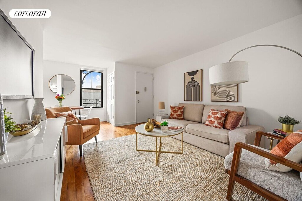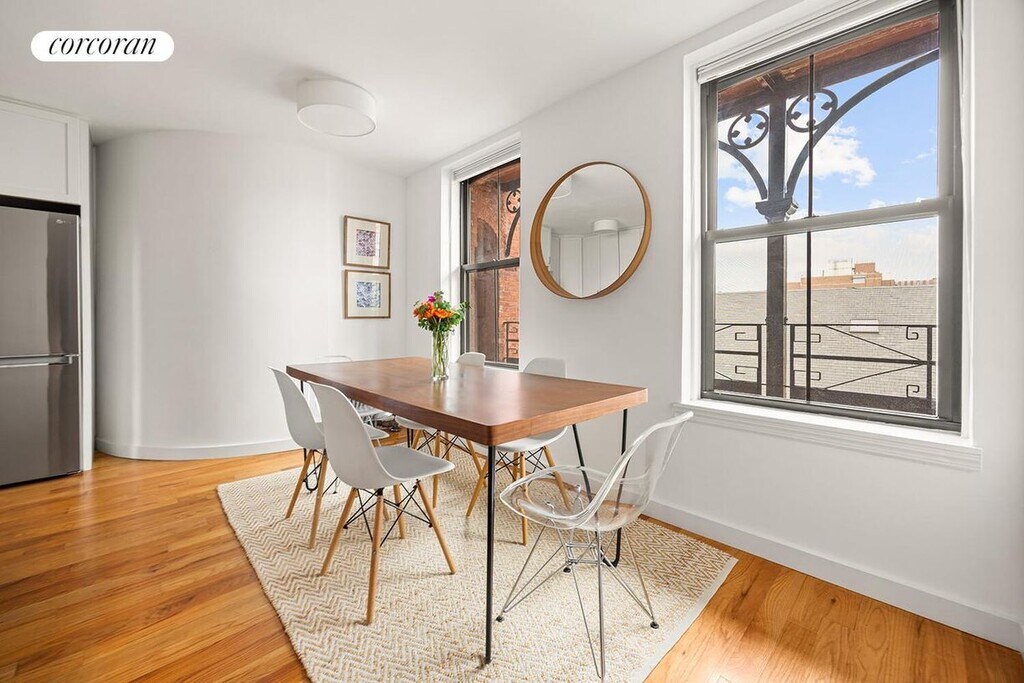 Welcome to 140 Warren Street, Unit C6, at the Cobble Hill Towers Condominium. This beautifully renovated, light-filled two-bedroom home offers a fantastic layout, generous proportions, and a perfect blend of modern comfort and historic charm.From the moment you enter, you'll be struck by the natural light. Sunlight pours through two oversized west-facing windows, filling the space with warmth and providing breathtaking sunset views over the Manhattan skyline.The renovated kitchen is as functional as it is stylish, featuring stainless steel appliances, crisp white cabinetry, Caesarstone countertops, and a classic subway tile backsplash. Ample storage and workspace make it a pleasure to cook in. Adjacent to the kitchen, the expansive dining area easily accommodates a large table for gatherings, with a discreet coat closet thoughtfully tucked away.The spacious living room offers plenty of room for comfortable seating and creates an inviting hub for both relaxation and entertaining.Both bedrooms overlook the serene common garden, ensuring quiet and privacy. Each features large south-facing windows and generous walk-in closets. The oversized primary suite easily fits a king-sized bed with room to spare for additional storage or even a home office.The bathroom has been tastefully renovated in timeless style, with white subway tile, black-and-white hexagon flooring, and polished chrome fixtures. Just outside, a conveniently placed closet houses an in-unit washer and dryer along with bonus storage.Additional highlights include elegant oak flooring throughout and a top-floor vantage point that maximizes light, views, and privacy. While this is a walk-up, the reward is a home that feels airy, peaceful, and truly special.Cobble Hill Towers is a 116-unit enclave of nine buildings bordering Warren, Baltic and Hicks Street which comes with access to two serene private park-like gardens that are exclusive to residents. Adorned with original architectural touches such as red brick, decorative terraces and wrought-iron details, The Cobble Hill Condominiums offer a unique oasis from the city. Additional amenities include on-site management, bike storage and a laundry room. In close proximity to cafes and restaurants on Court and Smith Streets, Brooklyn Bridge and Cobble Hill Park, Cobble Hill Towers is conveniently located to the F, G, 2, 3, 4, 5, and R trains. Pets Welcome.