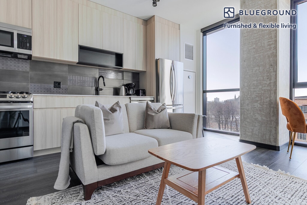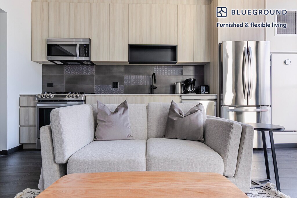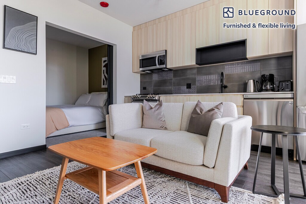 Discover the best of Chicago, with this one bedroom apartment in Fulton Market District. It’ll be easy to simply show up and start living in this furnished apartment with its fully equipped kitchen, living room, and our dedicated, on-the-ground support. (ID #CHI1354) The advertised rate of $2,430/month is the lowest available price, based on a 12 month(s) stay with a move-in date of March 18, 2026. Rates vary depending on the duration of stay, season, and other parameters. For exact pricing and additional pricing components, please visit our website and enter your desired move-in and move-out dates. The rate is applicable when billed upfront; it can be higher if billed in multiple payments. Brokers are welcome to reach out. Were you looking for an unfurnished lease? Try Blueground instead and upgrade from unfurnished to furnished living: - Furnished at rates comparable to unfurnished - No setup or furniture costs - save thousands - Move-in ready - save time, just bring your suitcase Designed with you in mind As with any Blueground apartment, you’ll find a thoughtfully designed space complete with beautiful furniture and a fully equipped kitchen in this one bedroom property. And, thanks to our superior quality mattresses, luxury linens, and towels, you can relax knowing you’ll always feel comfortably at home. When you’re ready for some fun, you can take in the Chicago vibes or bring the entertainment to you with the premium wireless speaker or smart TV. This apartment also offers in-apartment laundry. Sleeping arrangements Queen Bed, 63in/160cm Amenities Building amenities unique to this one bedroom apartment include an on-site: - Dryer - Elevator - Swimming pool - Washing machine - Lounge - Pets allowed Arrival and ongoing support The entire apartment is yours to enjoy! Throughout your stay, you’ll have access to our Client Experience team through the Blueground App. You can schedule additional cleanings, submit maintenance requests, and view our neighborhood recommendations with just a few taps. We’ll share all details upon confirmation of your stay. Other things to note Building amenities may have an extra cost. This Blueground apartment has flexible lease options, allowing you to book it for one month, a year, or more. Pets are welcome, though weight limits and breed restrictions apply and may incur fees. We take great pride in ensuring every photo displayed is shot in our own units with our actual furnishings. That said, we regularly refresh our decor and furniture arrangement, which may differ from what’s pictured. [SI]