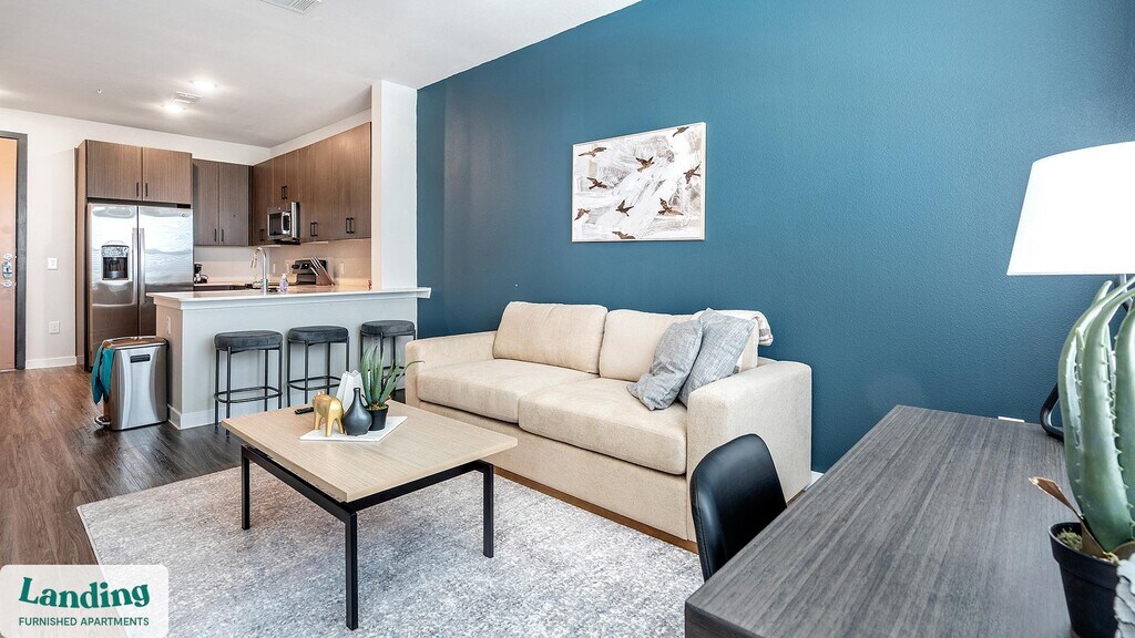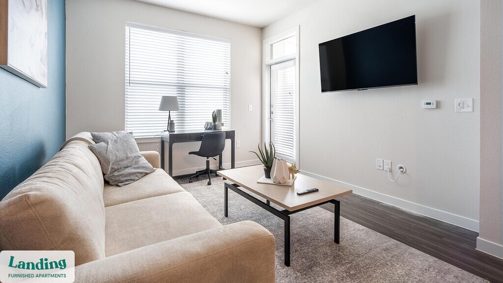 Landing offers flexible lease terms from weeks to months. Please always visit our website or contact us for the latest pricing & availability. Stay longer, save more: 6-Month Minimum base rent: starts at $1650/mo 12-Month Minimum base rent: starts at $1580/mo Landing offers flexible leases across a network of over 35,000 fully-furnished apartments throughout 375+ cities so you can rent on your terms, practically anywhere, and avoid the hassle of paying deposits or application fees. Visit to learn about all the benefits of a Landing membership, see our competitive up-to-date pricing, explore available apartments, take virtual tours, and make reservations online without jumping through traditional rental hoops. Landing's apartments at Lyric at the Merc are designed for comfortable, easy living, with the ability to stay as long as you like. Experience living with Landing Every apartment is outfitted with all the modern essentials including: custom-designed furnishings, a fully-equipped kitchen with deluxe stainless steel appliances, a gourmet coffee maker, premium linens, Smart TVs, and incredibly fast, reliable internet for working from home. When you live with Landing, you'll enjoy a hassle-free experience with the added benefit of 24/7 access to our dedicated member experience team. Some of the nitty-gritty: a background check and proof of income are required; we're completely smoke-free; bundled utility packages and pricing vary based on length of stay; pet-friendly options available; listed price reflects a 12-month minimum stay.