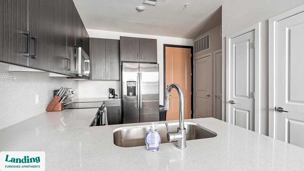 Landing offers flexible lease terms from weeks to months. Please always visit our website or contact us for the latest pricing & availability. Stay longer, save more: 6-Month Minimum base rent: starts at $1670/mo 12-Month Minimum base rent: starts at $1596/mo Landing offers flexible leases across a network of over 35,000 fully-furnished apartments throughout 375+ cities so you can rent on your terms, practically anywhere, and avoid the hassle of paying deposits or application fees. Visit to learn about all the benefits of a Landing membership, see our competitive up-to-date pricing, explore available apartments, take virtual tours, and make reservations online without jumping through traditional rental hoops. Landing's apartments at Lyric at the Merc are designed for comfortable, easy living, with the ability to stay as long as you like. Experience living with Landing Every apartment is outfitted with all the modern essentials including: custom-designed furnishings, a fully-equipped kitchen with deluxe stainless steel appliances, a gourmet coffee maker, premium linens, Smart TVs, and incredibly fast, reliable internet for working from home. When you live with Landing, you'll enjoy a hassle-free experience with the added benefit of 24/7 access to our dedicated member experience team. Some of the nitty-gritty: a background check and proof of income are required; we're completely smoke-free; bundled utility packages and pricing vary based on length of stay; pet-friendly options available; listed price reflects a 12-month minimum stay.