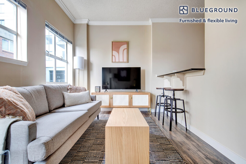 Feel at home wherever you choose to live with Blueground. You’ll love this charming Pike Place Market furnished one bedroom apartment with its modern decor, fully equipped kitchen, and comfortable living room with great views. Ideally located, you’re close to all the best that Seattle has to offer! (ID #SEA202) The advertised rate of $1,330/month is the lowest available price, based on a 2 month(s) and 1 day(s) stay with a move-in date of October 25, 2025. If you’re looking for a 1-year stay, the rate is $1,790/month. Rates vary depending on the duration of stay, season, and other parameters. For exact pricing and additional pricing components, please visit our website and enter your desired move-in and move-out dates. The rate is applicable when billed upfront; it can be higher if billed in multiple payments. Brokers are welcome to reach out. Were you looking for an unfurnished lease? Try Blueground instead and upgrade from unfurnished to furnished living: - Furnished at rates comparable to unfurnished - No setup or furniture costs - save thousands - Move-in ready - save time, just bring your suitcase Designed with you in mind As with any Blueground apartment, you’ll find a thoughtfully designed space complete with beautiful furniture and a fully equipped kitchen in this one bedroom property. And, thanks to our superior quality mattresses, luxury linens, and towels, you can relax knowing you’ll always feel comfortably at home. When you’re ready for some fun, you can take in the Seattle vibes or bring the entertainment to you with the premium wireless speaker or smart TV. This apartment also offers in-apartment laundry. Sleeping arrangements Queen Bed, 63in/160cm Amenities Building amenities unique to this one bedroom apartment include an on-site: - Dryer - Elevator - Washing machine - Pets allowed - Rooftop BBQ Arrival and ongoing support The entire apartment is yours to enjoy! Throughout your stay, you’ll have access to our Client Experience team through the Blueground App. You can schedule additional cleanings, submit maintenance requests, and view our neighborhood recommendations with just a few taps. We’ll share all details upon confirmation of your stay. Other things to note Building amenities may have an extra cost. This Blueground apartment has flexible lease options, allowing you to book it for one month, a year, or more. Pets are welcome, though weight limits and breed restrictions apply and may incur fees. We take great pride in ensuring every photo displayed is shot in our own units with our actual furnishings. That said, we regularly refresh our decor and furniture arrangement, which may differ from what’s pictured.