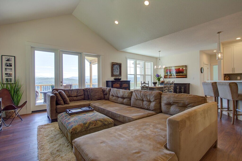 SPACIOUS 5 bed / 3 bath home with PANORAMIC Mt Hood VIEWS from the Open-Plan Great Room & Kitchen/Dining Room. Watch the hawks glide above the Sandy River Valley below from the roomy covered deck. The primary bedroom suite + 2 secondary bedrooms are located on the main floor with 2 bedrooms, cozy family room + additional bonus room on the lower level. This 3150 sq ft home built in 2019 has energy efficient windows & radiant heat throughout + 3-car garage with plenty of extra storage. Peaceful, private & conveniently located off Bluff Rd/Serban Rd, 5 minutes to Sandy or easy commuter access to Gresham/Portland via Hwy 26. Currently occupied. Showings by Appointment only. Do not disturb tenants.