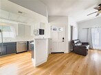 Property Id: 2500597 Welcome to Los Portillos! This 645-square-foot residence in Rancho Santa Margarita, CA, offers a thoughtful blend of low maintenance and comfort. The layout comprises of a bedroom, a bathroom, in-unit laundry and an open-concept living area. The heart of the home is a modern kitchen, featuring stainless steel appliances, blue cabinetry, and a functional U-shaped design. The living room boasts a sleek fireplace, adding warmth and character to the space. Recently installed light wood patterned LVP flooring throughout creates a sense of continuity and brightness. The bedroom includes an ensuite bathroom and sliding barn door for space-saving functionality. Large windows and neutral colors maximize the feeling of spaciousness, while strategic storage solutions, such as built-in closets, enhance the home's practicality. Parking is never an issue with the included garage, assigned carport, as well as plentiful street parking. This community benefits from everything SAMLARC has to offer, including Pools, Parks, Pickleball Volleyball and Basketball Courts, Picnic Shelters, Clubhouses, Trails, the Beach Club and Lago Santa Margarita Lake!