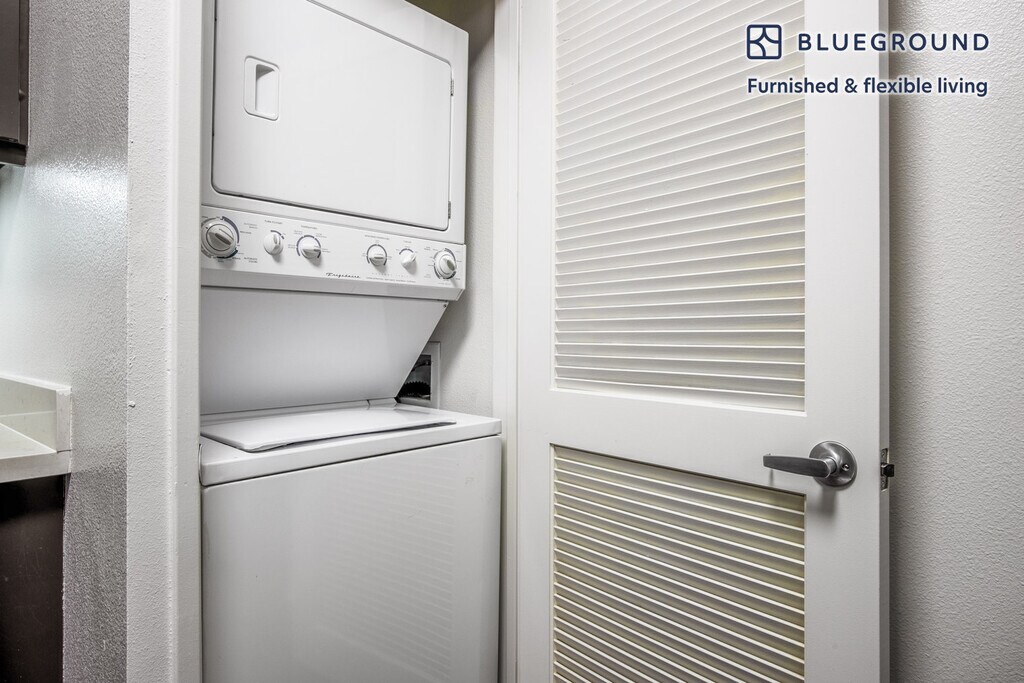 Discover the best of Santa Monica, with this one bedroom apartment in Downtown. It’ll be easy to simply show up and start living in this beautifully furnished apartment with its fully equipped kitchen, stylish living room, and our dedicated, on-the-ground support. (ID #LAX205) The advertised rate of $3,480/month is the lowest available price, based on a 2 month(s) and 1 day(s) stay with a move-in date of March 5, 2026. If you’re looking for a 1-year stay, the rate is $3,900/month. Rates vary depending on the duration of stay, season, and other parameters. For exact pricing and additional pricing components, please visit our website and enter your desired move-in and move-out dates. The rate is applicable when billed upfront; it can be higher if billed in multiple payments. Brokers are welcome to reach out. Were you looking for an unfurnished lease? Try Blueground instead and upgrade from unfurnished to furnished living: - Furnished at rates comparable to unfurnished - No setup or furniture costs - save thousands - Move-in ready - save time, just bring your suitcase Designed with you in mind As with any Blueground apartment, you’ll find a thoughtfully designed space complete with beautiful furniture and a fully equipped kitchen in this one bedroom property. And, thanks to our superior quality mattresses, luxury linens, and towels, you can relax knowing you’ll always feel comfortably at home. When you’re ready for some fun, you can take in the Santa Monica vibes or bring the entertainment to you with the premium wireless speaker or smart TV. This apartment also offers in-apartment laundry. Sleeping arrangements King Bed, 70.8in/180cm Amenities Building amenities unique to this one bedroom apartment include an on-site: - Dryer - Elevator - Washing machine - Parking - Pets allowed Arrival and ongoing support The entire apartment is yours to enjoy! Throughout your stay, you’ll have access to our Client Experience team through the Blueground App. You can schedule additional cleanings, submit maintenance requests, and view our neighborhood recommendations with just a few taps. We’ll share all details upon confirmation of your stay. Ideally Located Located in DTLA, this furnished apartment invites you to explore the heart of one of LA’s fastest-growing neighborhoods. Today, the area represents the central business district of the city and hosts the Los Angeles Convention Center (LACC), a world-class convention and exhibition space. From museums, like The Broad, to restaurants and bars in the Historic Core or concerts and sporting events in South Park, this modern metropolis offers a well-balanced blend of business and pleasure. The Arts District and Chinatown are also two of the trendiest spots in Downtown Los Angeles with new restaurants and nightlife options. Other things to note Building amenities may have an extra cost. This Blueground apartment has flexible lease options, allowing you to book it for one month, a year, or more. Pets are welcome, though weight limits and breed restrictions apply and may incur fees. Parking is offered based on availability and is subject to a fee. We take great pride in ensuring every photo displayed is shot in our own units with our actual furnishings. That said, we regularly refresh our decor and furniture arrangement, which may differ from what’s pictured. [SI]