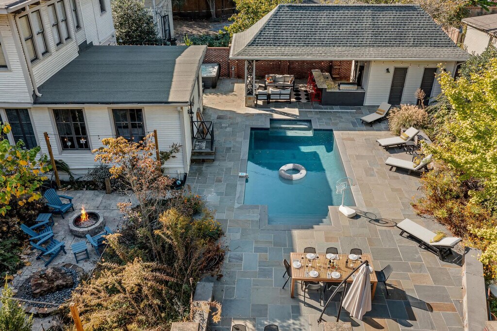 This newly renovated 6-bedroom home in Memphis offers everything you need for a southern blues getaway. Located just 2.8 miles from Beale Street and a 10-minute drive to Graceland, this home features a large pool, loungers, an outdoor TV, fridge, BBQ, wet bar, pool table, ping pong, air hockey, and a gym with a treadmill, yoga mat, and weights. Family-friendly amenities include a pack n play and high chair. Enjoy the fire pit, fully stocked kitchen, outdoor dining, smart TVs in the living room and every bedroom, a porch swing, and a deck perfect for remote workers. High-speed Wi-Fi is available throughout the home. The main spaces of this home include 6 bedrooms and 4 full bathrooms. The upstairs primary bedroom features a plush king-size bed, Roku TV, full ensuite bathroom with tub/shower combo, overhead fan and lighting, and room-darkening curtains. The upstairs guest bedrooms offer plush king-size and queen-size beds, Roku TVs, and full-body mirrors. The third upstairs guest bedroom includes two full-over-full bunk beds that sleep eight and a Roku TV. The downstairs guest bedroom has a plush queen-size bed, Roku TV, and full-body mirror. The sixth bedroom upstairs features a twin/twin trundle bed that sleeps two and a private desk/workspace. The chef’s kitchen is fully equipped with an electric range, large island with seating, and both a Keurig and a filtered coffee maker. The living room boasts natural lighting, an open concept, Roku TV, pool table, air hockey, and a jukebox. The gym includes a treadmill, yoga mats, and dumbbell weights. The spectacular resort-style backyard and pool area offer a private pool, cushioned poolside loungers, BBQ grill, outdoor fridge and sink, shaded sofa seating, fire pit, hot tub, outdoor dining, and string lights for added ambiance. Up to two pets are allowed with a $125 pet fee. Uber and Lyft are reliable modes of transportation in the area, making it easy to explore Memphis and its attractions. The primary guest must be at least 21 years of age to book this property. There is a strict no-parties policy, and a maximum of 12 guests are allowed on-site at all times, including daytime guests. Quiet hours are between 22:00 and 7:00. There is one camera on the front porch for security purposes. A guest verification process is required within 48 hours of booking confirmation, and a rental agreement must be signed prior to check-in. A non-refundable $60 damage waiver is required, covering accidental damage during your stay if reported before check-out. [SI]