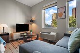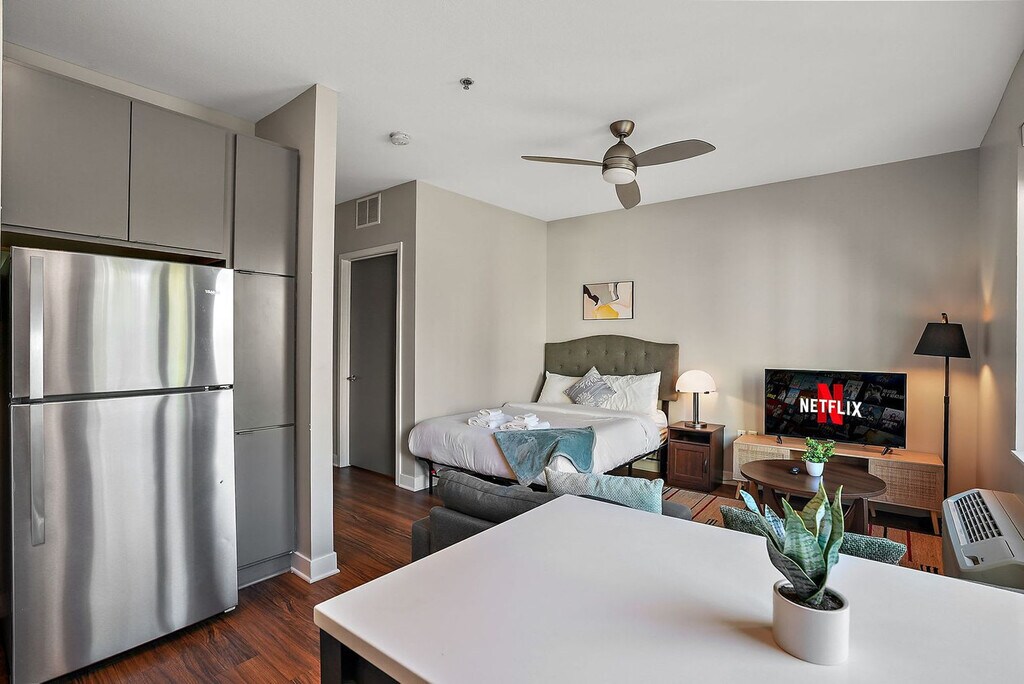 Feel at home in this studio apartment in the heart of Downtown Minneapolis. This cozy apartment is suitable for a family, group of friends, or business travelers and has all of the amenities necessary to enjoy your stay. It features soaring ceilings, stainless appliances, custom cabinetry, elegant tiling, and modern decor. Great amenities include a heated pool, fitness center, fully equipped kitchen, smart TV with streaming apps installed, complimentary coffee, and in-unit washer/dryer. There is an additional $100-300 pet fee based on stay length, collected separately. Max 2 pets are allowed (40lbs combined) excluding Pit Bulls and Bull Mastiffs [similar breed]. A pet fee may be charged for guests traveling with an emotional support animal. Additionally, the presence of emotional support animals can be declined from stays or Experiences. Stay steps from downtown while enjoying the green escape of Minneapolis’ beloved Loring Park. Walk to the Convention Center, Walker Art Center, Target Field, and legendary music venues like First Avenue. With theaters, museums, the University of Minnesota, and lakes just minutes away, this spot puts the best of the city right at your doorstep. Uber and Lyft drivers are everywhere, and the location and downtown are very walkable. Smoking of any kind is not permitted within or outside of this apartment, including balconies, patios, or common and/or parking areas. Any sign of smoking is a violation of the stay agreement, which may result in immediate termination and recovery fees beginning at $500. There is a $200 penalty for removing smoke detectors and a $200 penalty for lost key fobs. No outside guests are allowed without permission. Quiet hours are between 9 PM and 8 AM. Check-in is at 4 PM and check-out is at 11 AM (a $75/hr late fee applies). No weapons or drugs are allowed; police will be called for violating this rule. A valid photo ID is required to complete the booking. The minimum age requirement of the primary person booking should be 22 years old for out of town guests and 25 years old for local guests. Guests must agree not to disturb neighbors at all times during the stay. Long-term guests (30 days+) will be subject to a background search and credit check. Registration Number: STR422715
