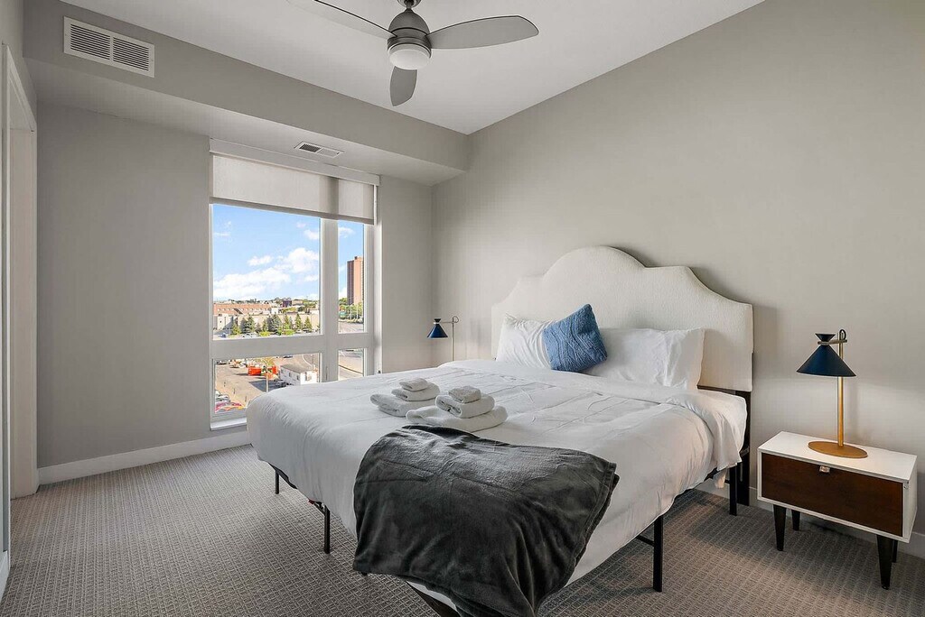 Feel at home in this condo in the heart of Downtown Minneapolis! This apartment features soaring ceilings and modern decor. This cozy apartment is suitable for a family, group of friends, or business travelers and has all of the amenities necessary to enjoy your stay. Great amenities include a heated pool, fitness center, fully equipped kitchen, smart TV with streaming apps installed, complimentary coffee, and in-unit washer/dryer. A pet fee between $100 and $300 will be collected separately, based on stay length, with a maximum of 2 pets allowed (40lbs combined), excluding Pit Bulls and Bull Mastiffs or similar breeds. Stay steps from downtown while enjoying the green escape of Minneapolis’ beloved Loring Park. Walk to the Convention Center, Walker Art Center, Target Field, and legendary music venues like First Avenue. With theaters, museums, the University of Minnesota, and lakes just minutes away, this spot puts the best of the city right at your doorstep. Uber and Lyft drivers are everywhere, and the location and downtown are very walkable. Smoking of any kind is not permitted within or outside of this apartment, including balconies, patios, or common and/or parking areas. Any sign of smoking is a violation of the stay agreement, which may result in immediate termination and recovery fees beginning at $500. Guests must agree to not disturb neighbors at all times during the stay and must observe quiet hours from 9pm-8am each day. Check-in is at 4 PM and check-out is at 11 AM (with a $75/hr late fee). There is a $200 penalty for removing smoke detectors and a $200 penalty for lost key fobs. No outside guests are allowed without permission. One towel is provided per guest per stay. A valid photo ID is required to complete the booking. No weapons or drugs are allowed; police will be called for violating this rule. Minimum age requirement of primary person booking should be 22 years old for out of town guests and 25 years old for local guests. Registration Number: STR422715