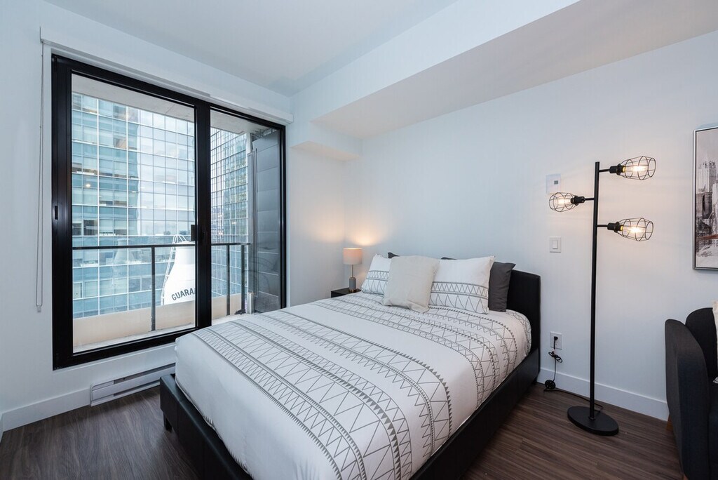 Located in the bustling downtown core of Montreal, adjacent to the Bell Centre, this property epitomizes luxury and practicality, setting a new benchmark for urban living, especially tailored for young professionals, newcomers, and students. Situated mere steps away, residents enjoy easy access to the attractions of the Golden Square Mile and the historic charm of Old Montreal. This development fosters an environment ideal for both academic pursuits and professional development. This new condo is very well located near the Bell Centre, just steps away residents have access to the Golden Square Mile’s attractions. It features 1 bedroom with a queen bed and 1 bathroom. Indoor parking with in/out privileges is available for an additional fee, depending on your length of stay. We offer a variety of cleaning services that include bi-weekly or monthly options, available for an extra charge. Residents enjoy easy access to the attractions of the Golden Square Mile and the historic charm of Old Montreal, making it an ideal location for both academic pursuits and professional development. No parties of any kind or loud noises that can alter the harmony of residents are allowed. No smoking of cannabis, cigarettes, or any kind inside the apartment, balcony, or the building. Care for your home away from home. The apartment offers shared workspaces, a conference room, and a workspace with a view, making it ideal for remote work.