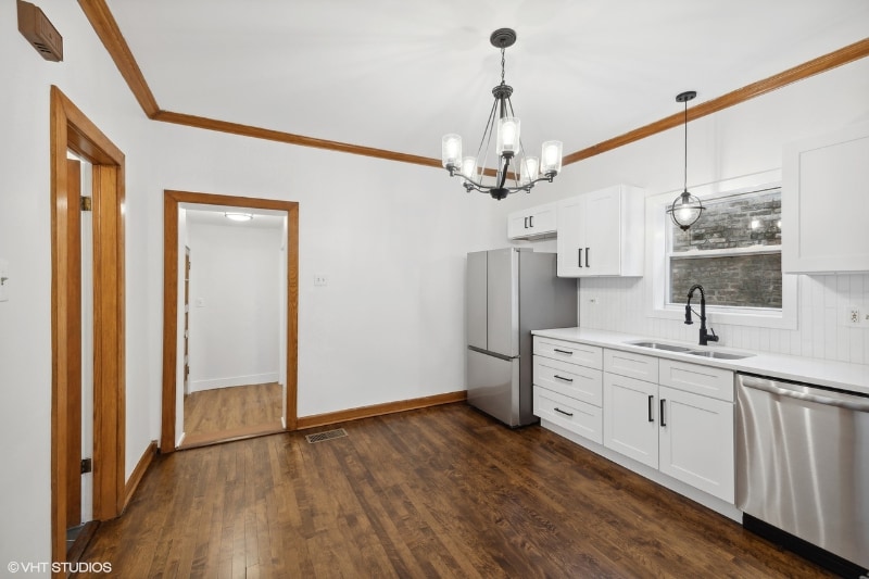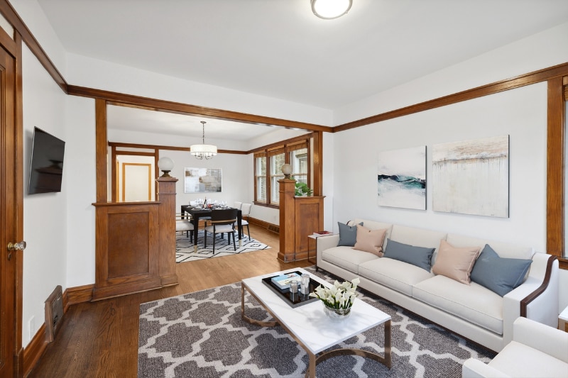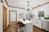 Property Id: 2409967 Beautifully renovated and truly move-in ready home with all the original details of a classic bungalow. The all-brick structure has been lovingly restored with refinished wood floors, trim and doors. Gracious living room has original built-ins that open into the dining room. Brand-new kitchen features white cabinets, quartz countertops and stainless appliances. New bathroom has a restored cast-original tub and new fixtures. Three bedrooms on the main level. Full walk-out basement has been freshly repainted and fully tiled; perfect for a family room and game room. Large backyard has a stamped concrete patio and plenty of green space.